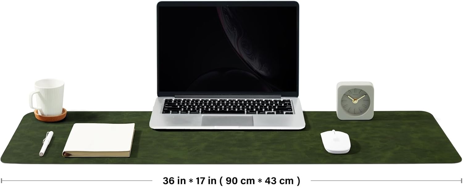 Distressed Leather Desk Mat - Non-Slip PU Desk Pad for Office and Home - Desk Organization and Accessories - Ideal for Large Mouse Pad and Desk Mats on Top of Desks(Forest Green,36"x 17")