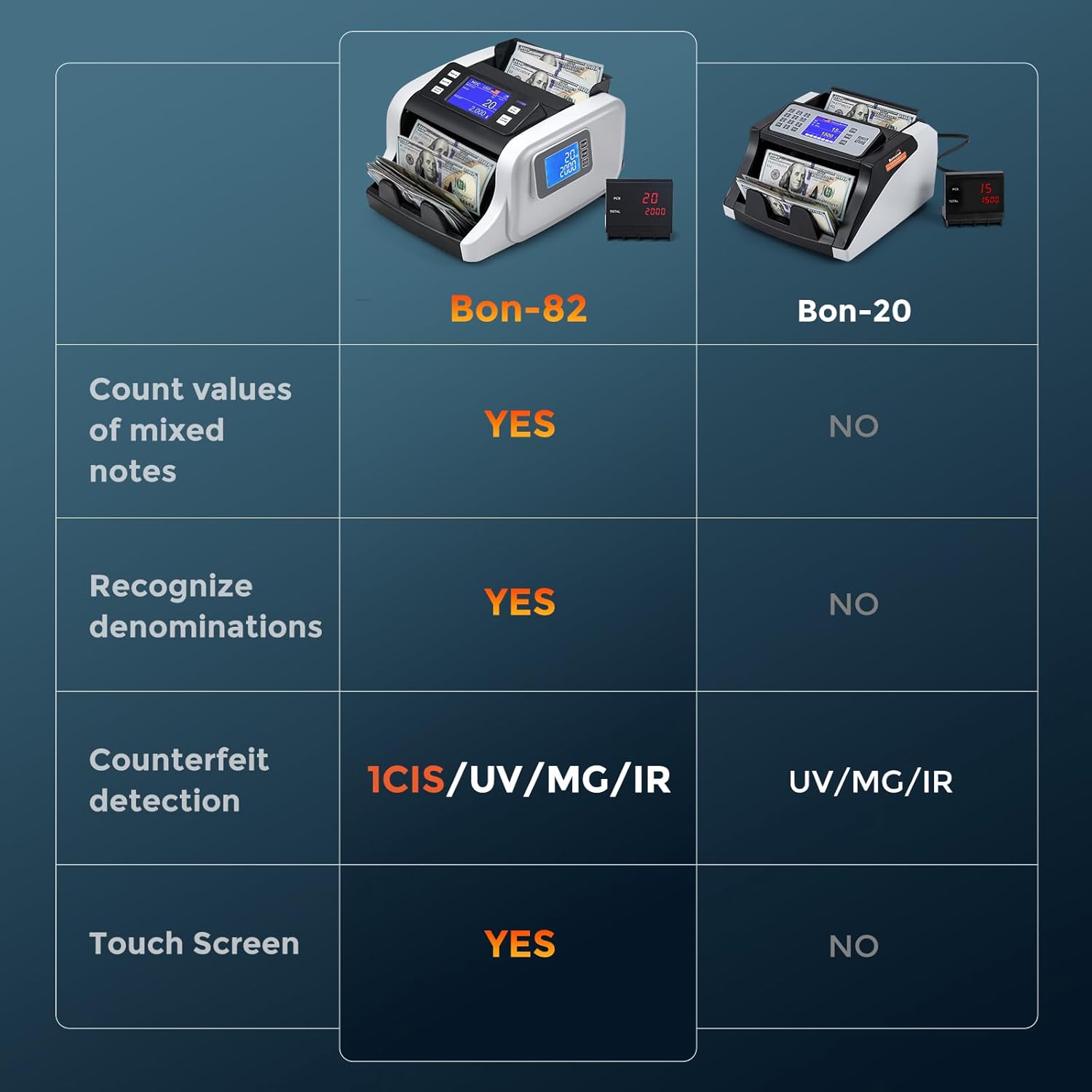 Bonvoisin Money Counter Machine Mixed Denomination, Cash Counter Machine with Counterfeit Detection, Bill Counter with Batch, ADD and Count Mode