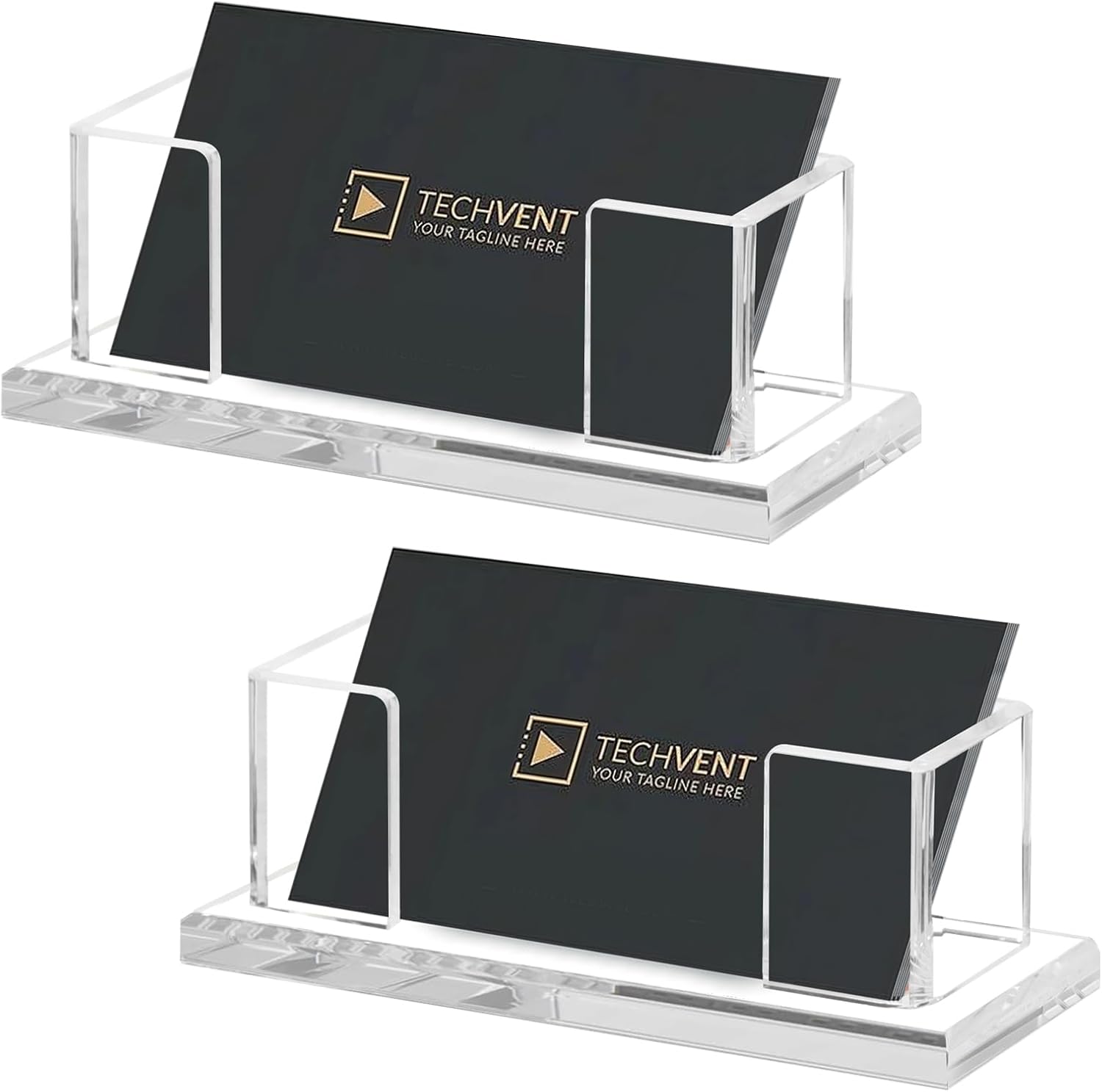 Weiai Acrylic Business Card Holder Stand for Desk, 2 Pieces Modern Clear Base Business Card Organizer Display