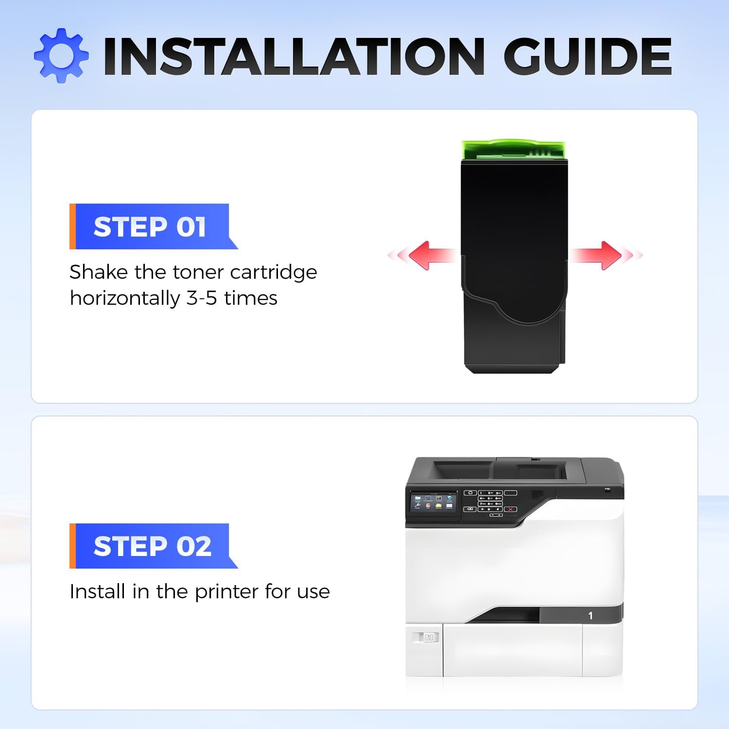 74C10K0 74C10C0 74C10M0 74C10Y0 Toner Cartridge Set 4-Pack High Yield With Chip Replacement Compatible for Lexmark CS720 CS725 CX725 CS720de CS720dte CS725de CS725dte CX725de CX725dte CX725dhe Printer