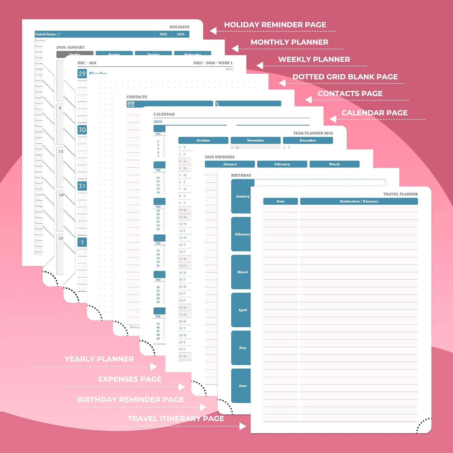 - Professional Grade Material for Your Daily Planner: Crafted with FSC 100GSM thick paper, this 2026 planner ensures good writing with markers while gentle on your eyes through its ivory white pages. The leather soft cover and lay flat binding make it a calendar planner companion for busy professionals, students, and families