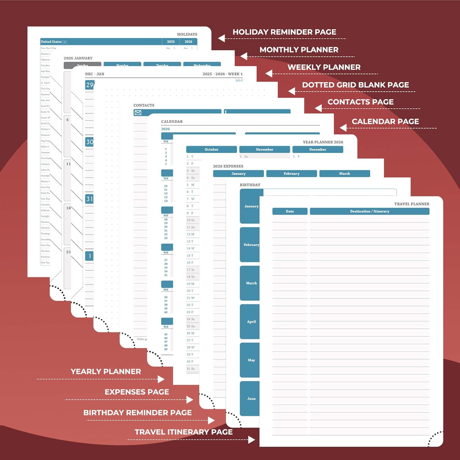 - Professional Grade Material for Your Daily Planner: Crafted with FSC 100GSM thick paper, this 2026 planner ensures good writing with markers while gentle on your eyes through its ivory white pages. The leather soft cover and lay flat binding make it a calendar planner companion for busy professionals, students, and families