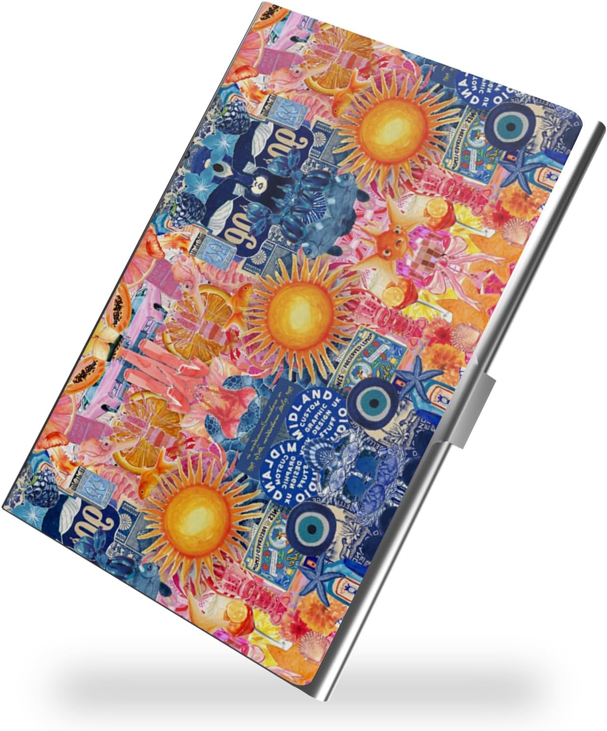 Business Card Metal Slim Organizer, Professional Stainless Steel Square Pocket Wallet for Office Workers, Compact and Portable for Pockets (Sun)
