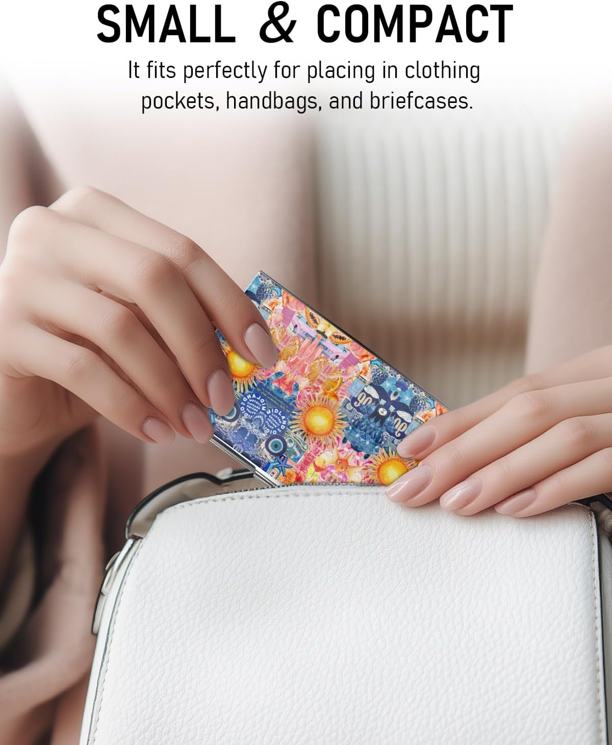 - 【Protected Metal Card Wallet】The business card case is made of stainless steel, which is sturdy and durable.The smooth long-handle latch is safe and reliable. The surface is designed with closed drop glue and exquisite artistic illustrations to show your unique temperament.