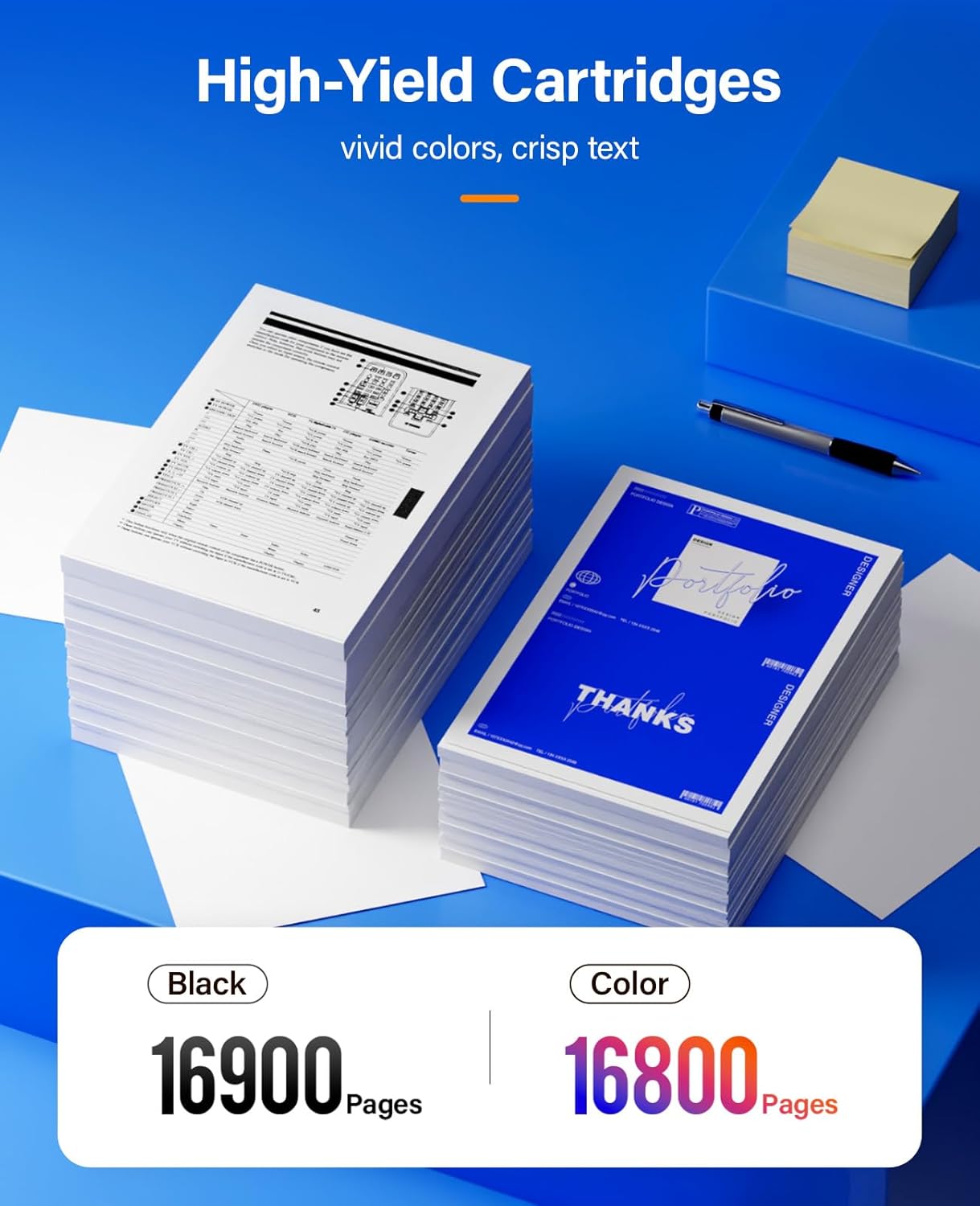 - High Page Yield: 16,900 pages for Black and 16,800 pages for Color toner cartridge (Letter/A4, at 5% coverage)