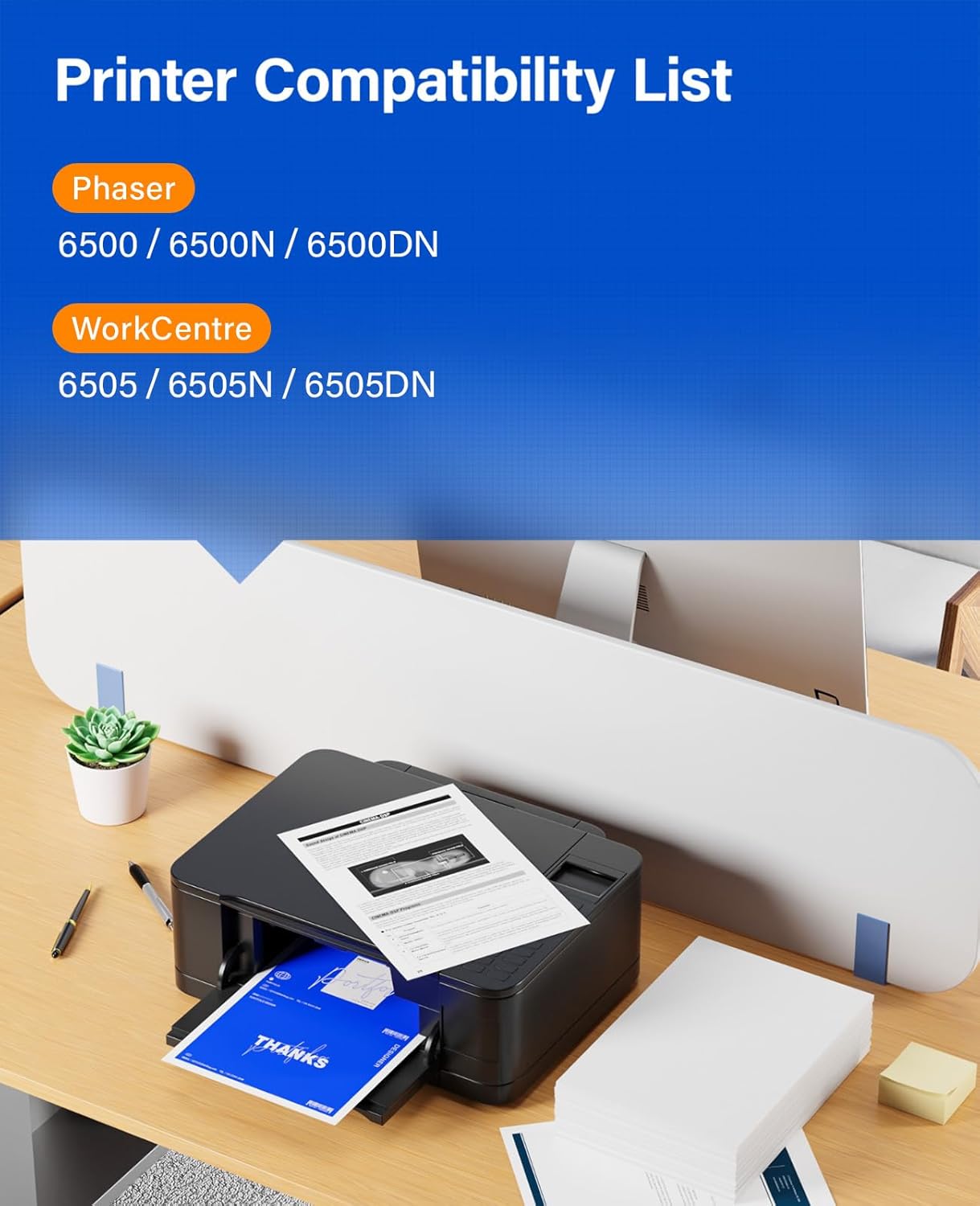 - Compatible Printer: Compatible with Xerox Phaser Series: 6500,6500N,6500DN, WorkCentre Series: 6505, 6505N, 6505DN Printer; Compatible Toner Model: 106R01597, 106R01594, 106R01595, 106R01596