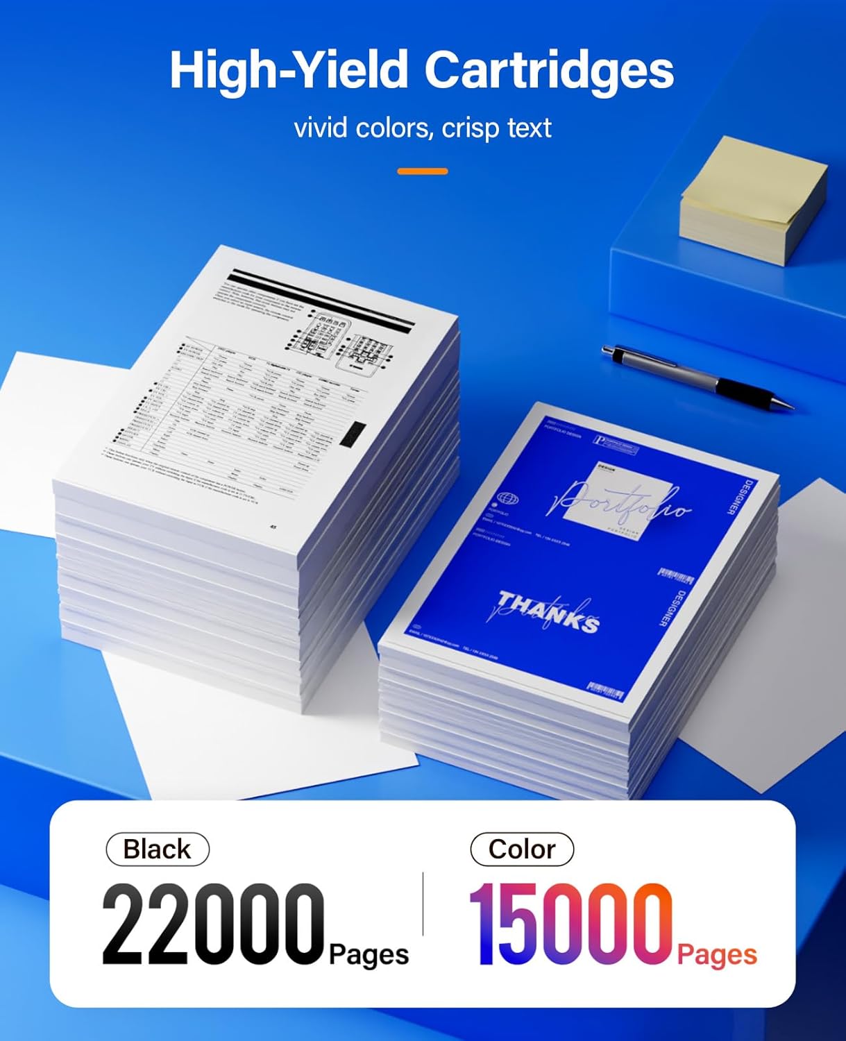 - High Page Yield: 22,000 pages for Black and 15,000 pages for Color toner cartridge (Letter/A4, at 5% coverage)
