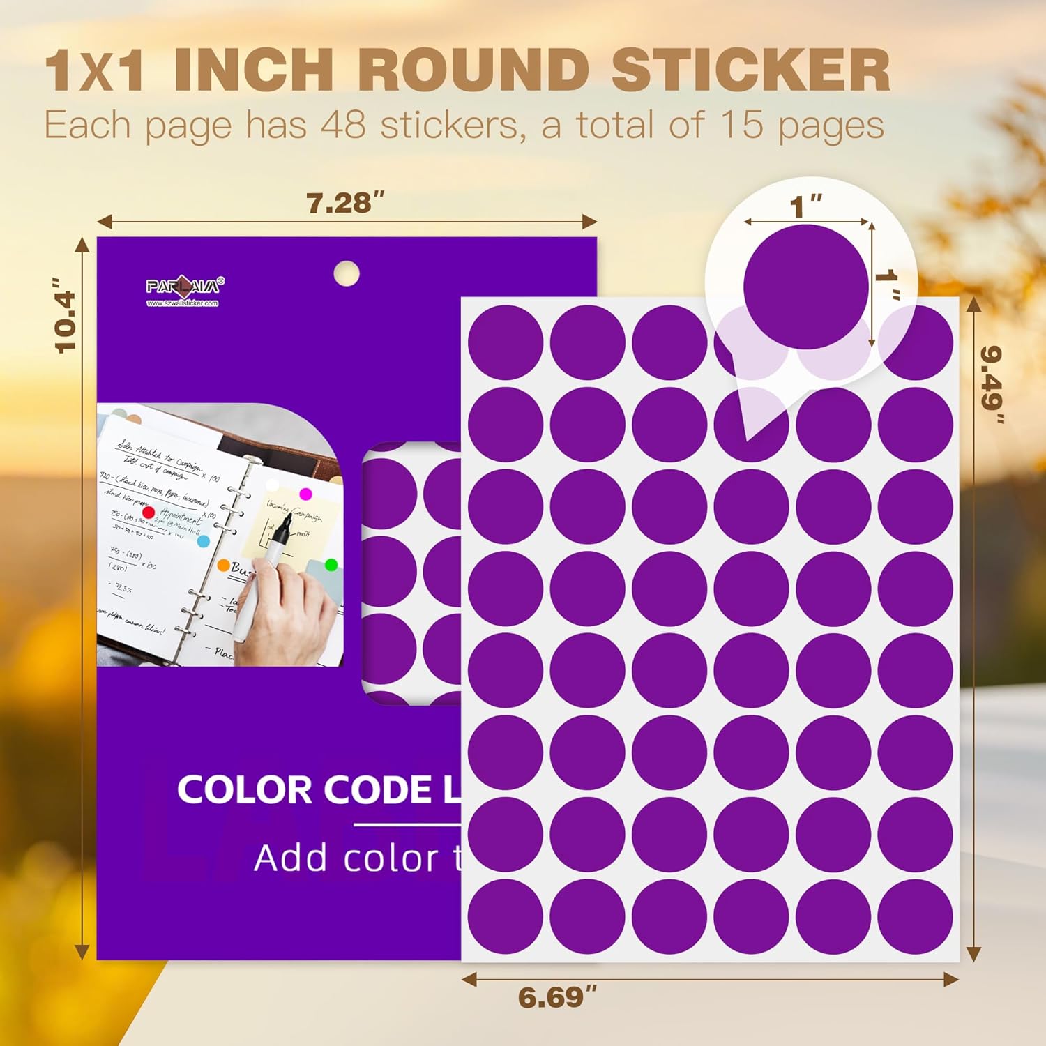 PARLAIM 1 inch Round Purple Dot Sticker,720PCS Permanent Adhesive Color Code Circle Sticker Labels for Office Classroom Garage Sale