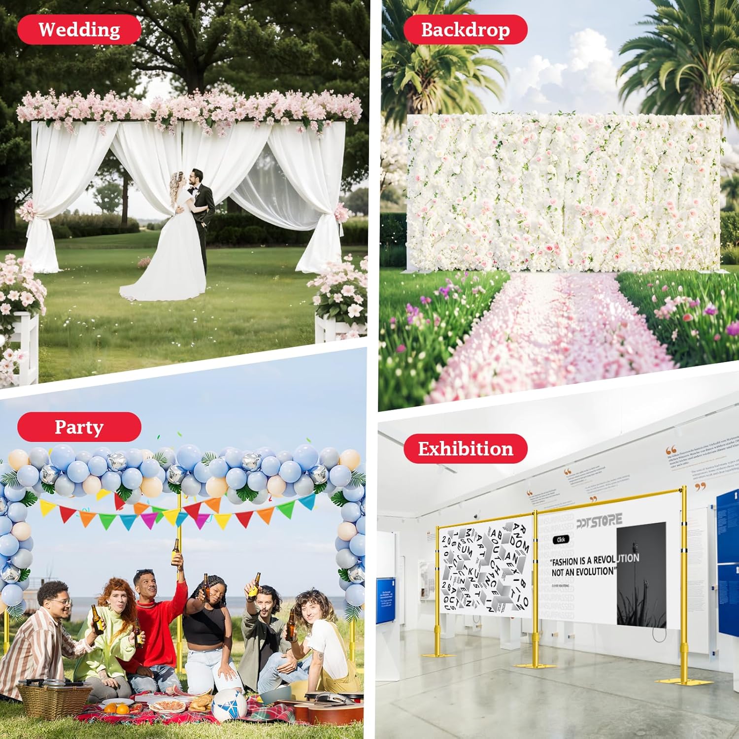 - 【 Wide Application】This decoration backdrop stand is perfectly suitable for weddings, parties, birthday, baby shower, photography, photo booths, banner stand backgrounds, business events and so on. You can hang drapes, balloons, string lights and flowers to make your backdrop stand amazing
