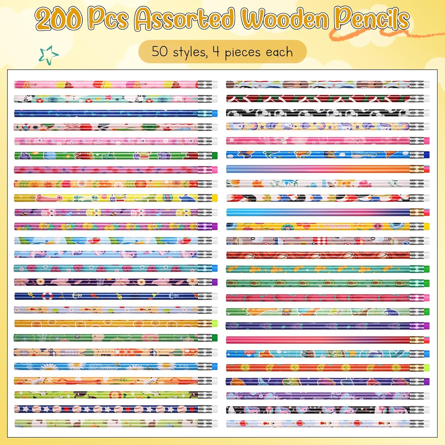 - Sufficient Quantity: the assorted pencil set contains 200 pcs #2 HB pencils with 50 styles of designs, 4 pencils for each, providing sufficient quantity and rich style choices, which can not only meet personalized aesthetic needs, but also be easy to share with friends
