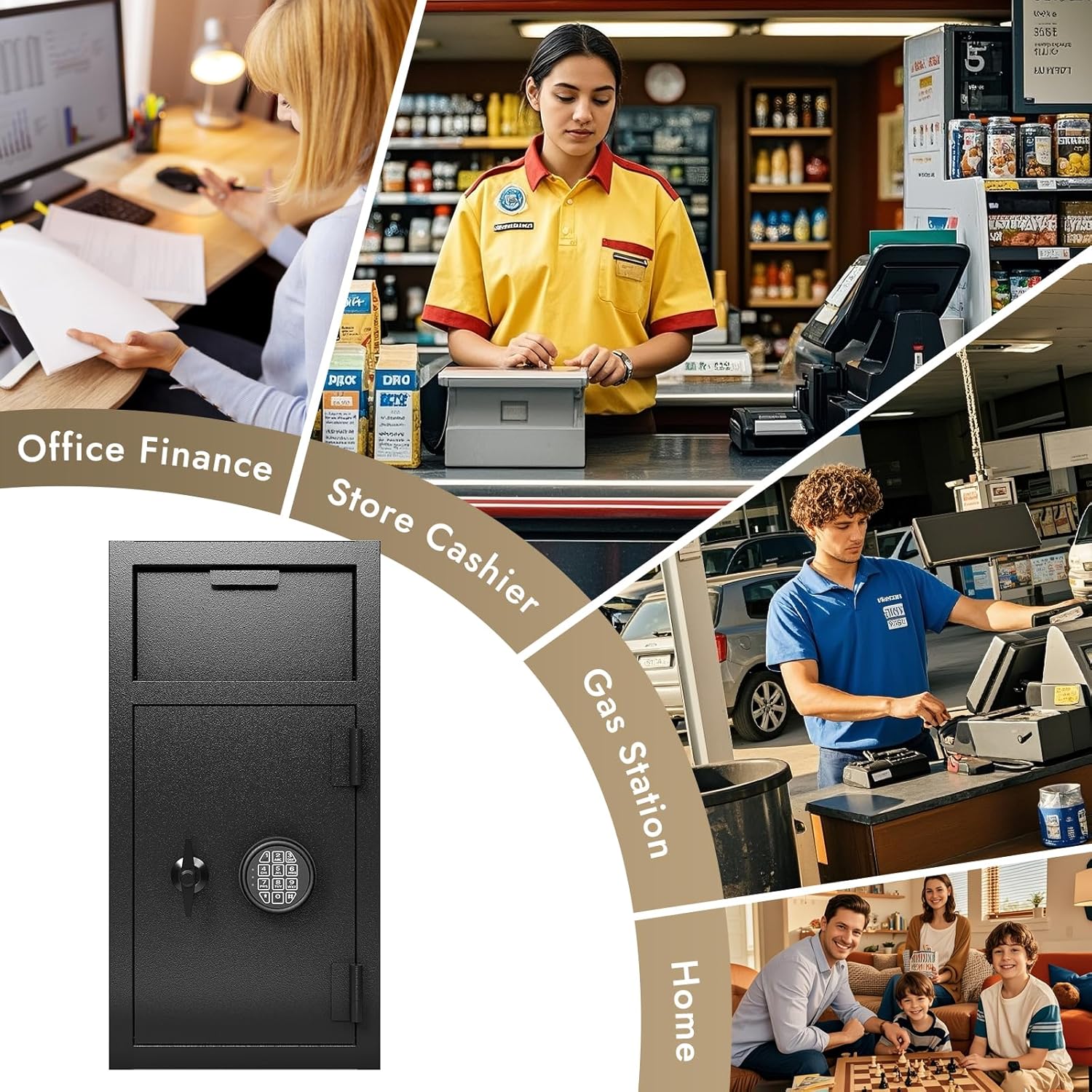 - Bonus Fireproof & Waterproof Bag : Money drop box provide added protection, this safe box for money includes a complimentary fireproof and waterproof bag, ideal for storing important items like cash, checks, passports, and sensitive files. Whether used as a home safe or business safe, it offers extra peace of mind in emergencies such as fires or floods.