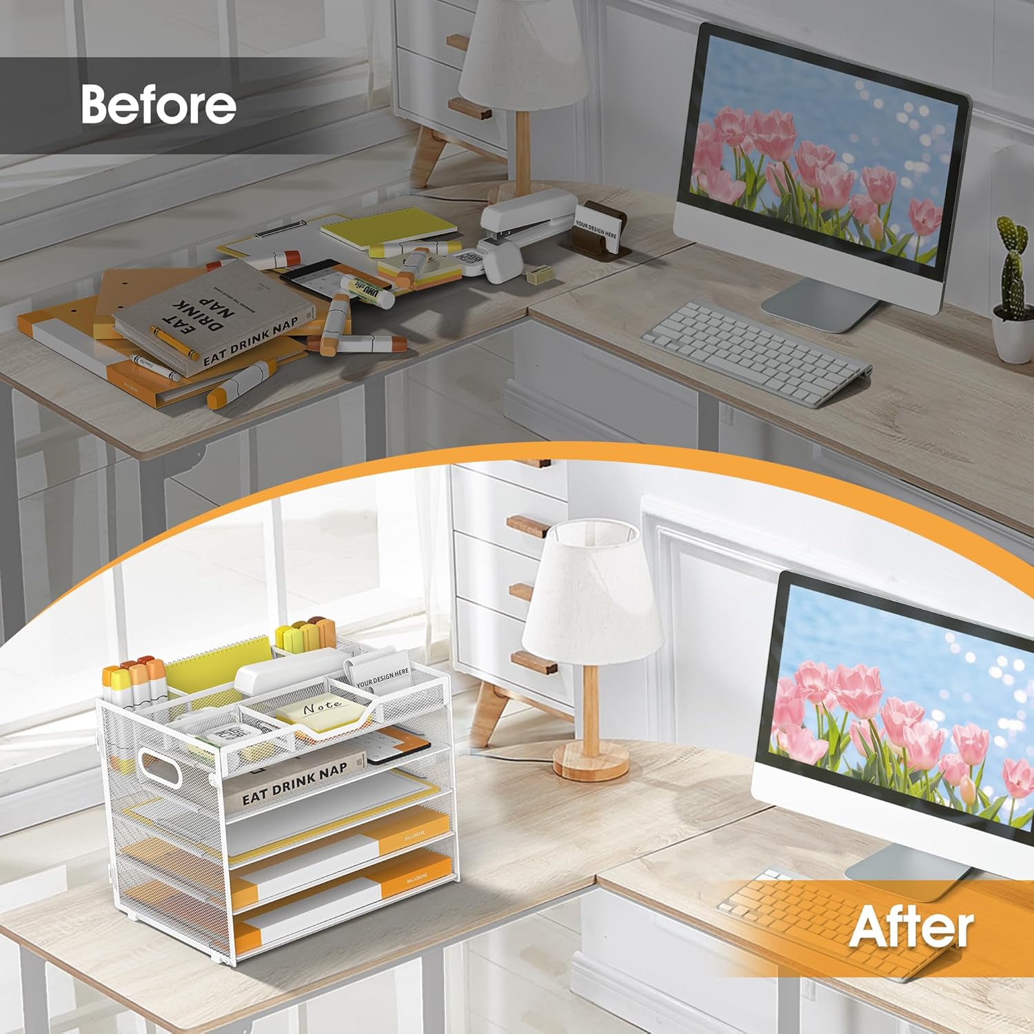 - Quality Materials and Superb Craftsmanship-Featuring a lightweight and durable metal mesh construction with a sturdy frame and powder-coated finish that ensures the desktop file manager won't bend or break when holding large quantities of paper, files and books, the file manager has a smooth finish that complements the office's work decor