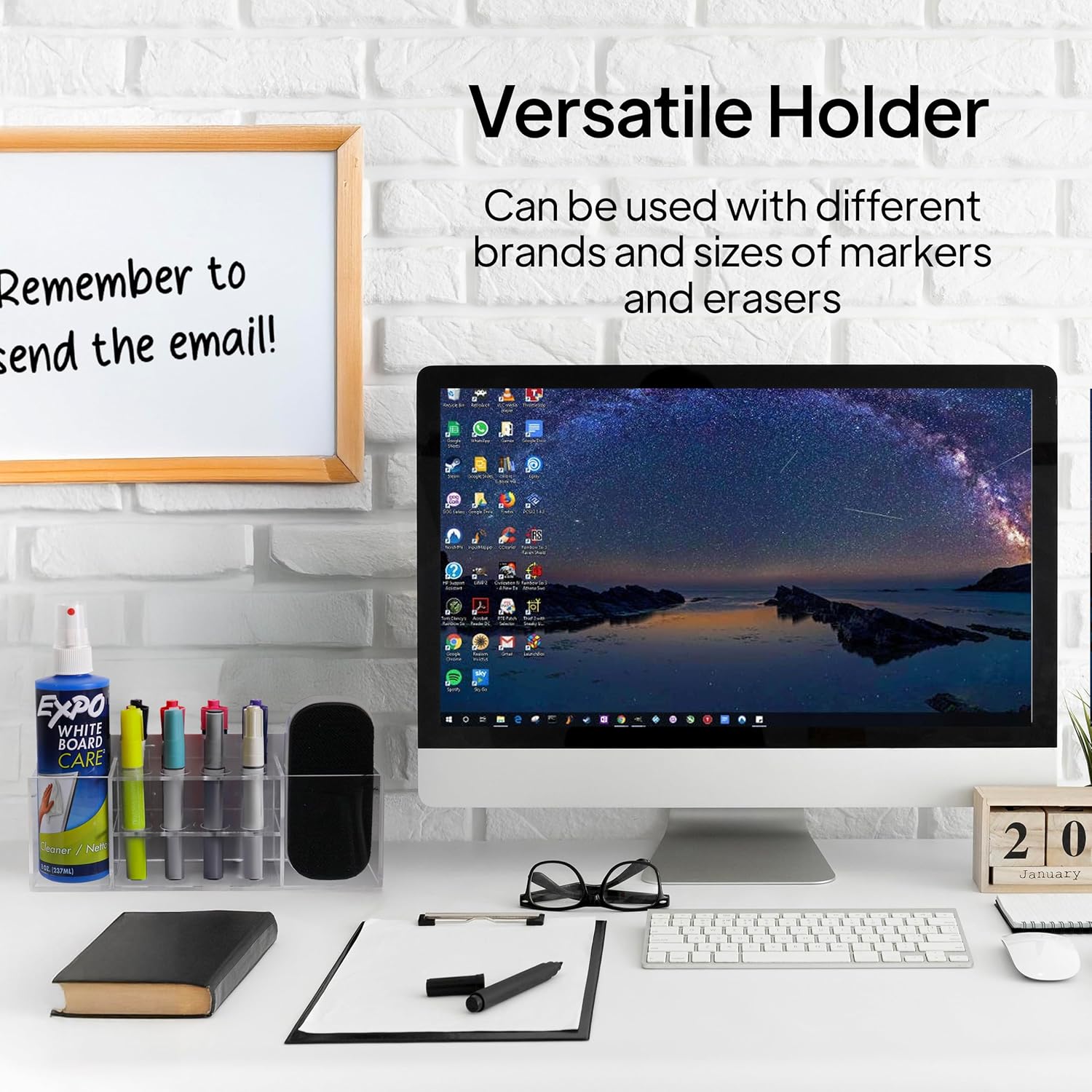 - [High-Capacity Marker Storage] Say goodbye to clutter and limited storage. Our Large 8-Slot Acrylic Magnetic Dry-Erase Marker Holder offers generous space for up to 8 standard markers, plus additional room for a whiteboard eraser and spray cleaner. It's the ideal solution for busy classrooms, offices, and creative workspaces where more tools are in constant use.