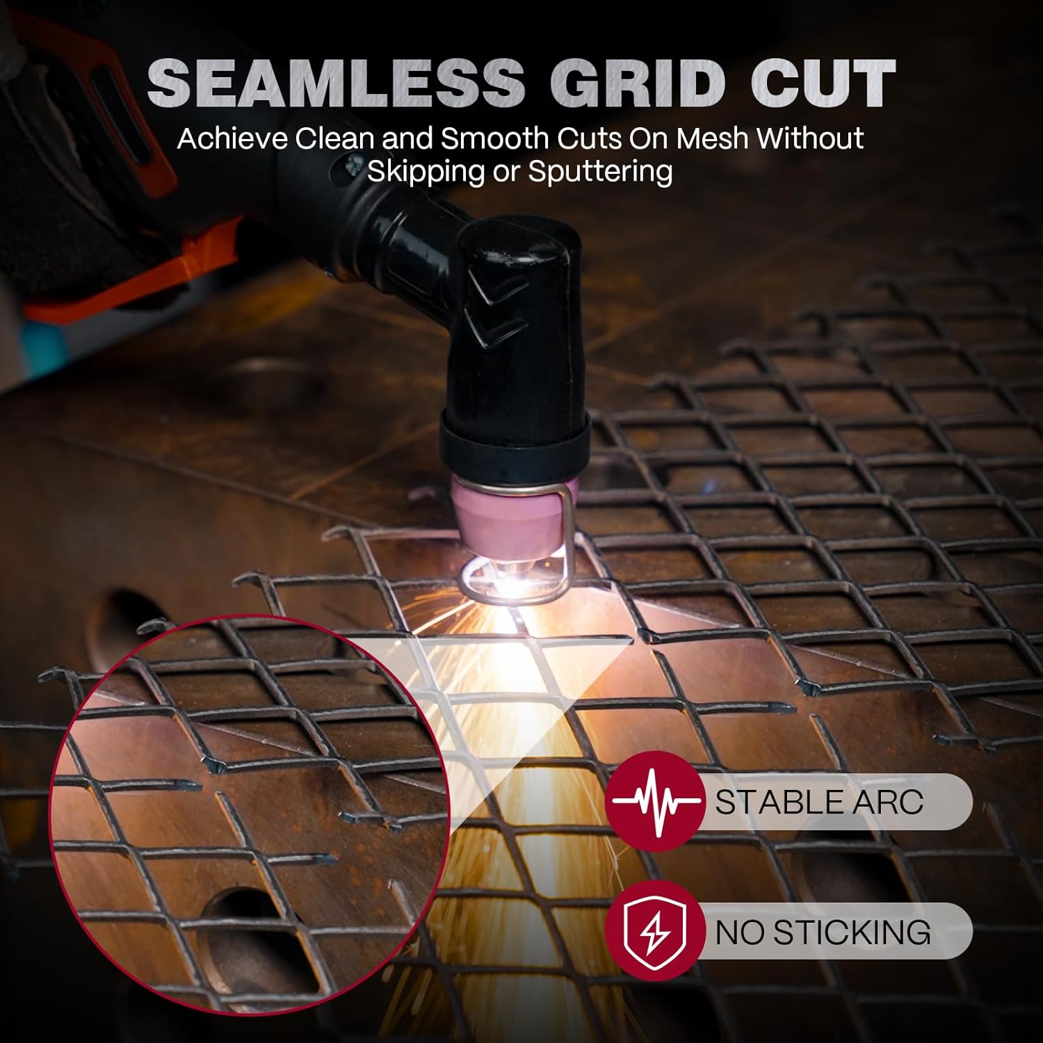 - [GRID CUTTING & RUST REMOVAL] This plasma cutter supports precise grid cutting for detailed shapes and patterns. It also features pilot arc rust removal, effectively cleaning metal surfaces without damaging the base material and reducing prep time. (NOTE: Please switch the machine to the corresponding mode before using these functions.)