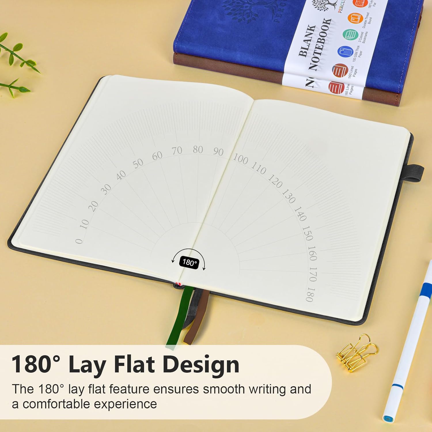 - 【PERFECTLY SIZED A5 BLANK NOTEBOOK】:The PERCUN A5 Hardcover Executive Notebook features 160 pages of thick, acid-free blank paper (100 GSM), perfect for sketching, writing, or journaling without ink bleed-through.The hardcover design and leather texture ensure long-lasting durability for daily use.