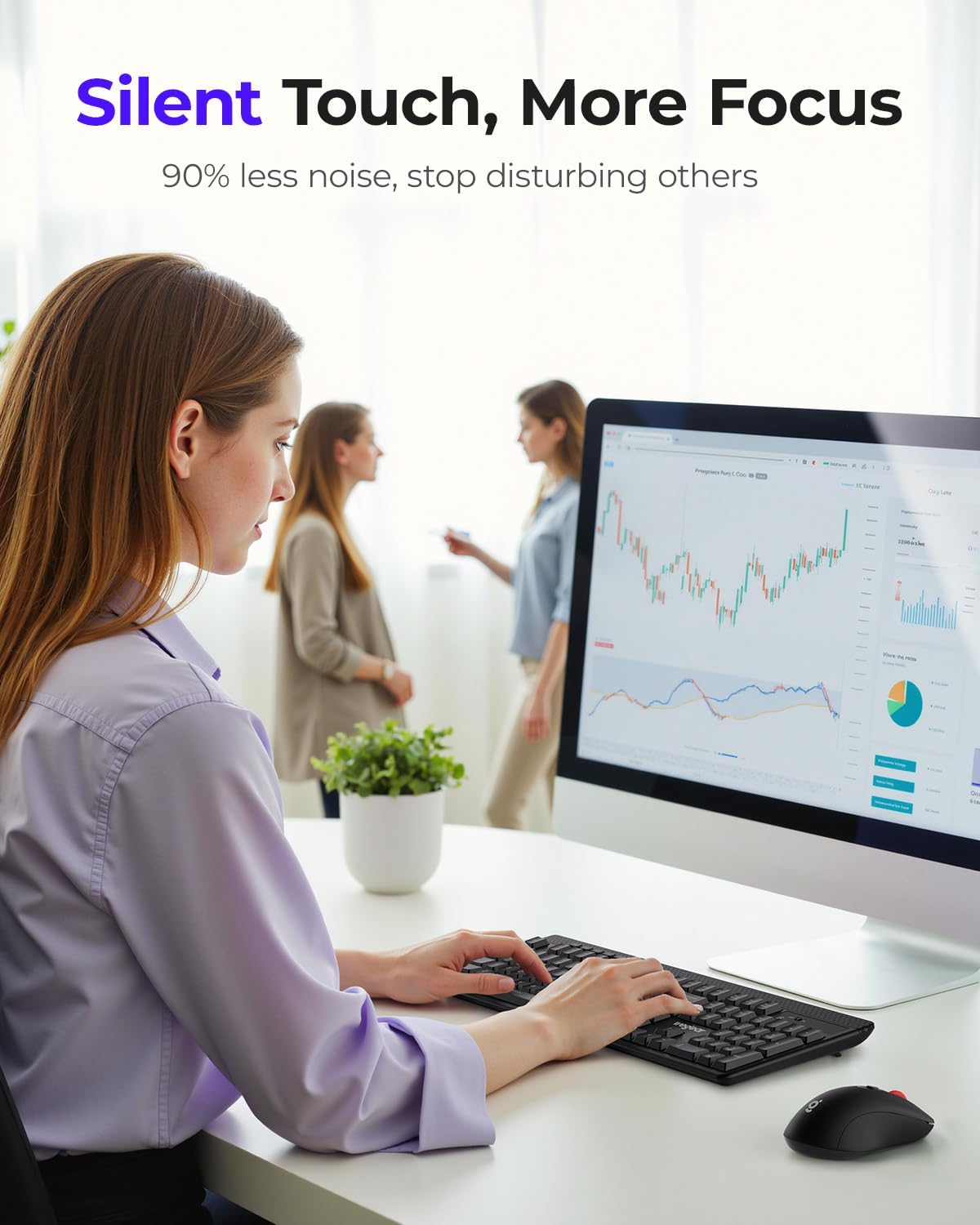 - 【Silent Keys & Wide Compatibility】This keyboard reduces typing noise by 90% through low-profile keycaps, ensuring quiet home/office use. Compatible with desktops, laptops, and Surface devices via included USB receiver.