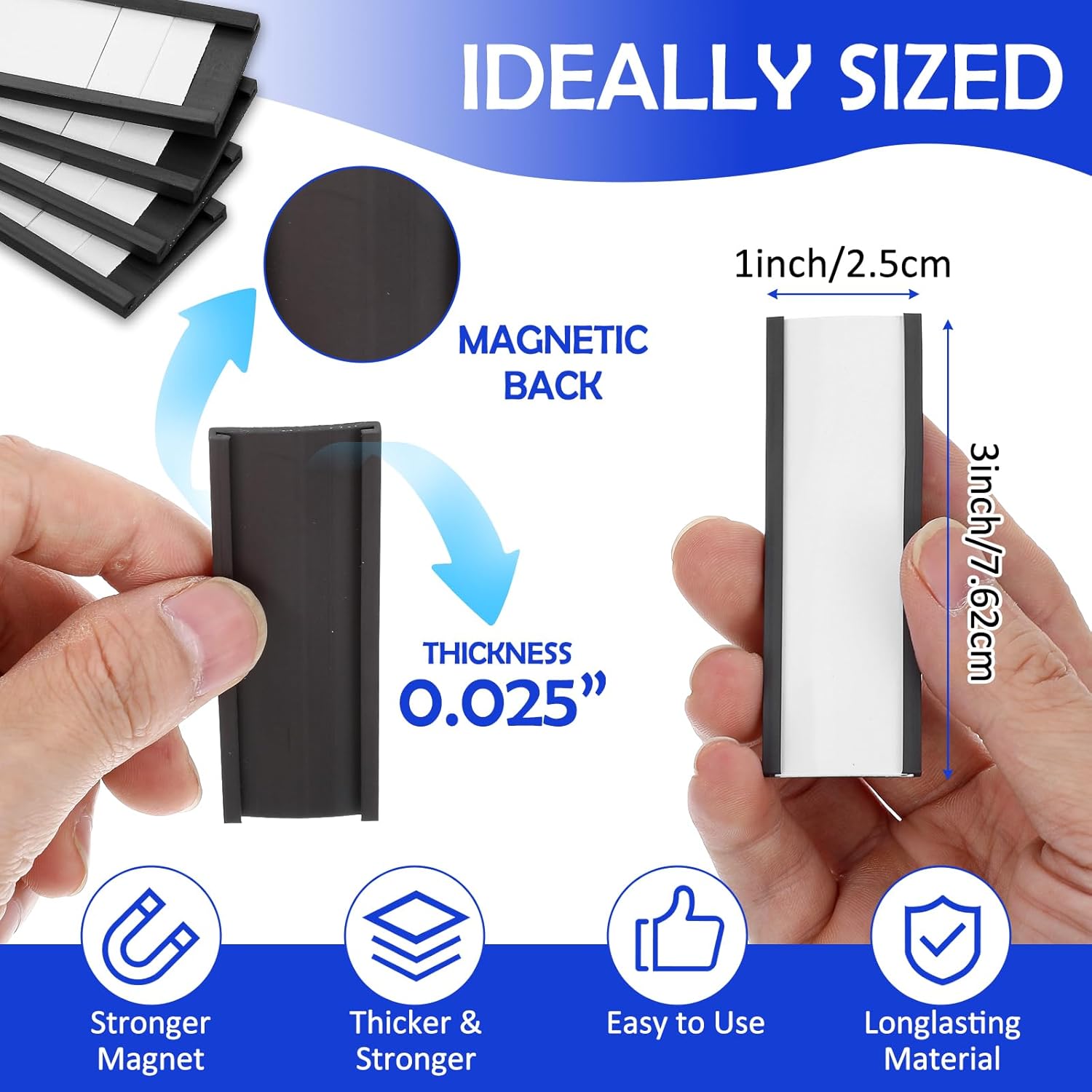 - Application: Present important information to customers, colleagues, and friends in a clear and eye-catching way! This magnet labels for steel shelves set comes in 60 pcs - 3x1 inches, providing your business with a choice to best work with your décor;