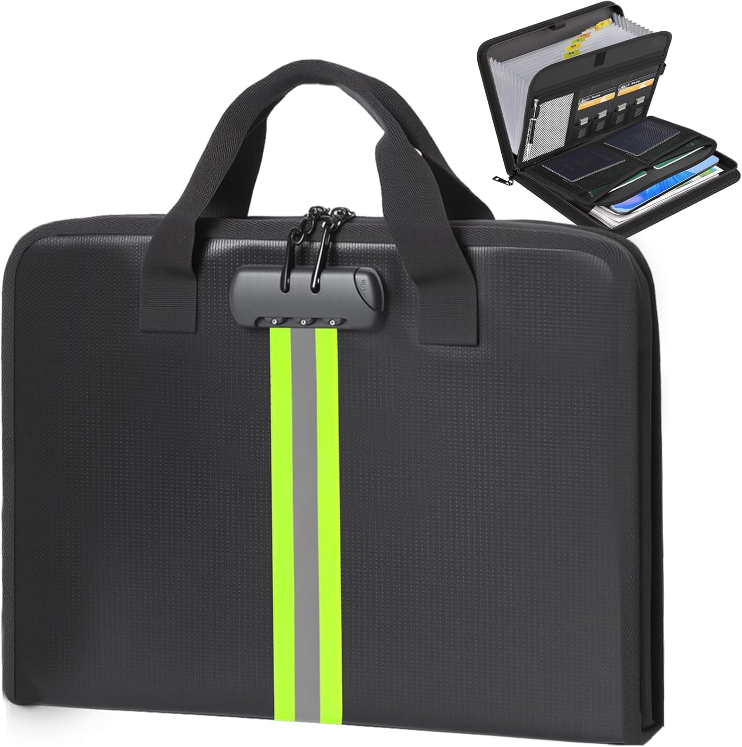 - Easier to Store and Carry:Secure expanding file folder features a combination lock and labeled pockets for easy alphabetical filing. The portable file organizer (14.1” x 10.35” x 1.8”) includes a handle for effortless transport, making it a versatile office file organizer