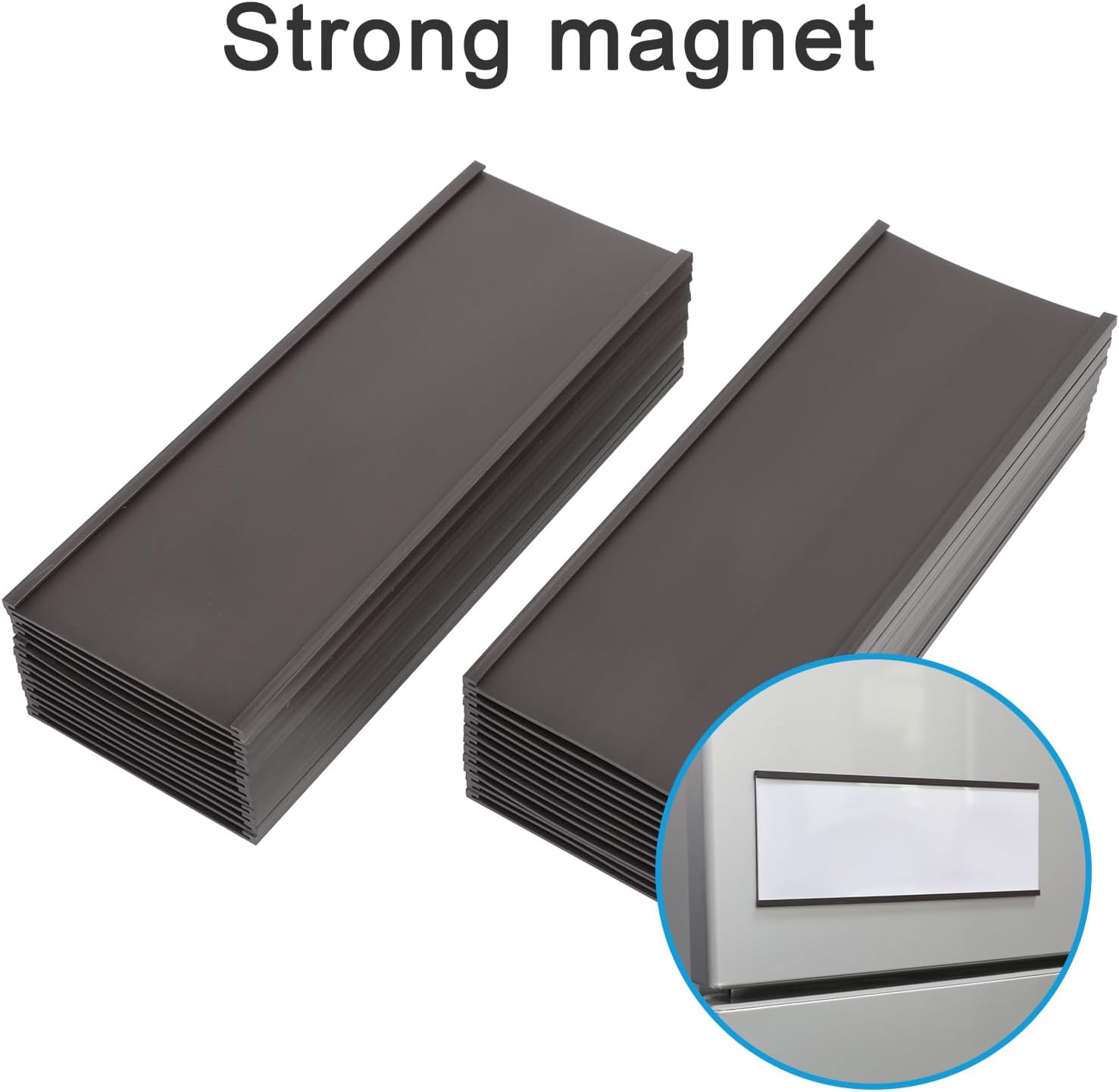 Eeoyu Magnetic Label Holders with Magnets Magnetic Data Card Holders with Clear Plastic Protectors for Metal Shelf, Whiteboard, Set of 50 (3 x 8 Inch)