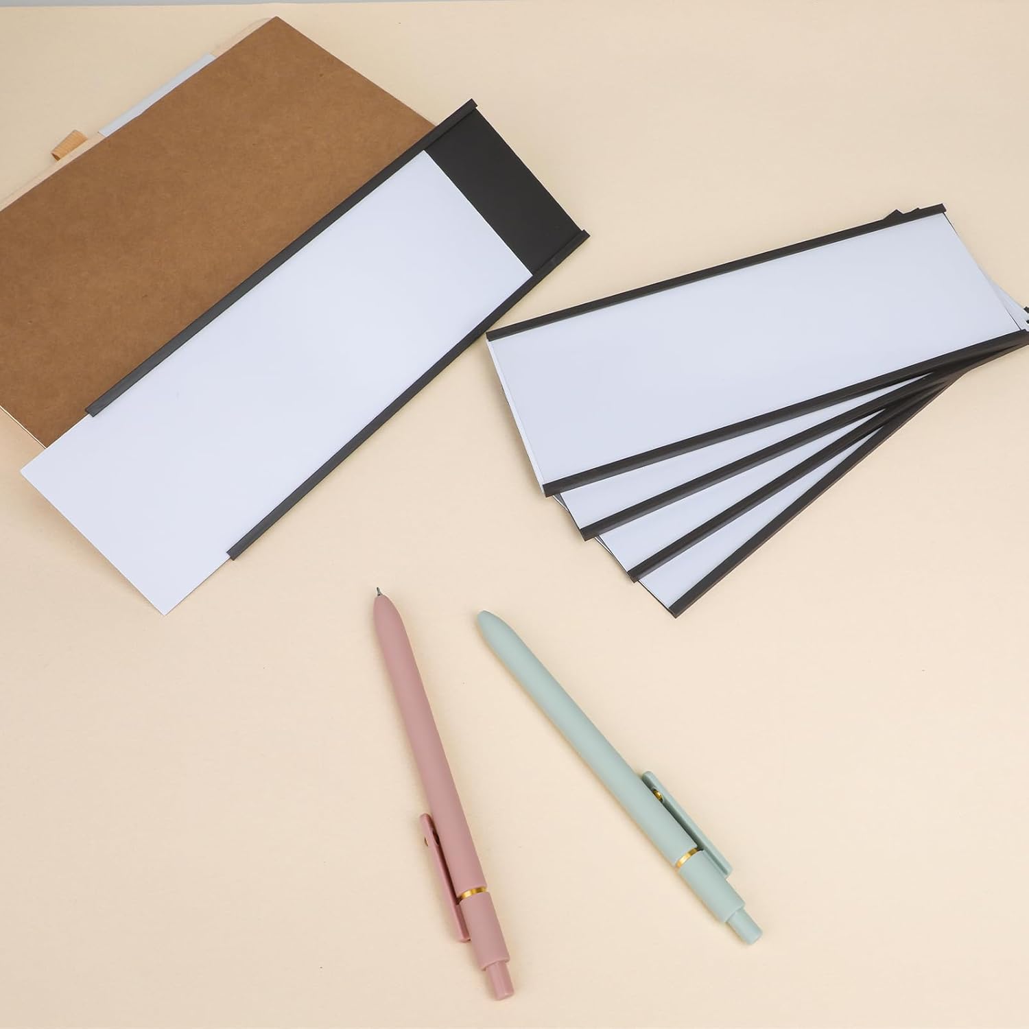 - Easy to use: write on the included paper strip, slide in the paper insert and the transparent protective film, stick the magnetic label holder to clean and flat surface, saving time and making reposition easier compared with traditional adhesive labels