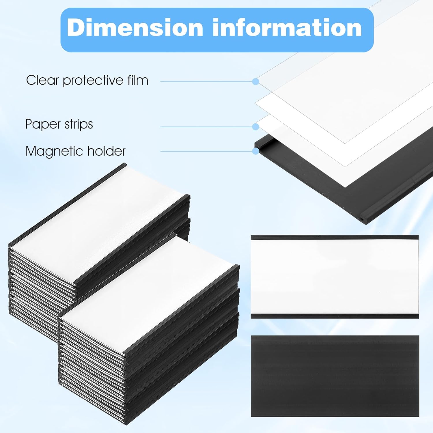 - Nice Combination: you will receive 30 pieces black magnetic label holders, 30 pieces clear protective films and 60 pieces white replacement papers, adequate quantity to meet your daily use needs and help you share them with your colleagues
