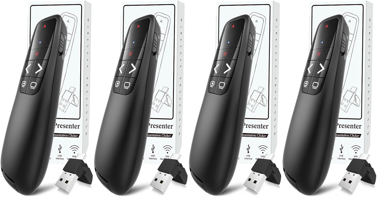 (4 Units) Wireless Presentation Clicker PowerPoint Presenter Remote: Clicker with Red Laser Pointer Long Range PPT Control -Power Point Google Slide Advancer for Mac Laptop PC Computer Keynote
