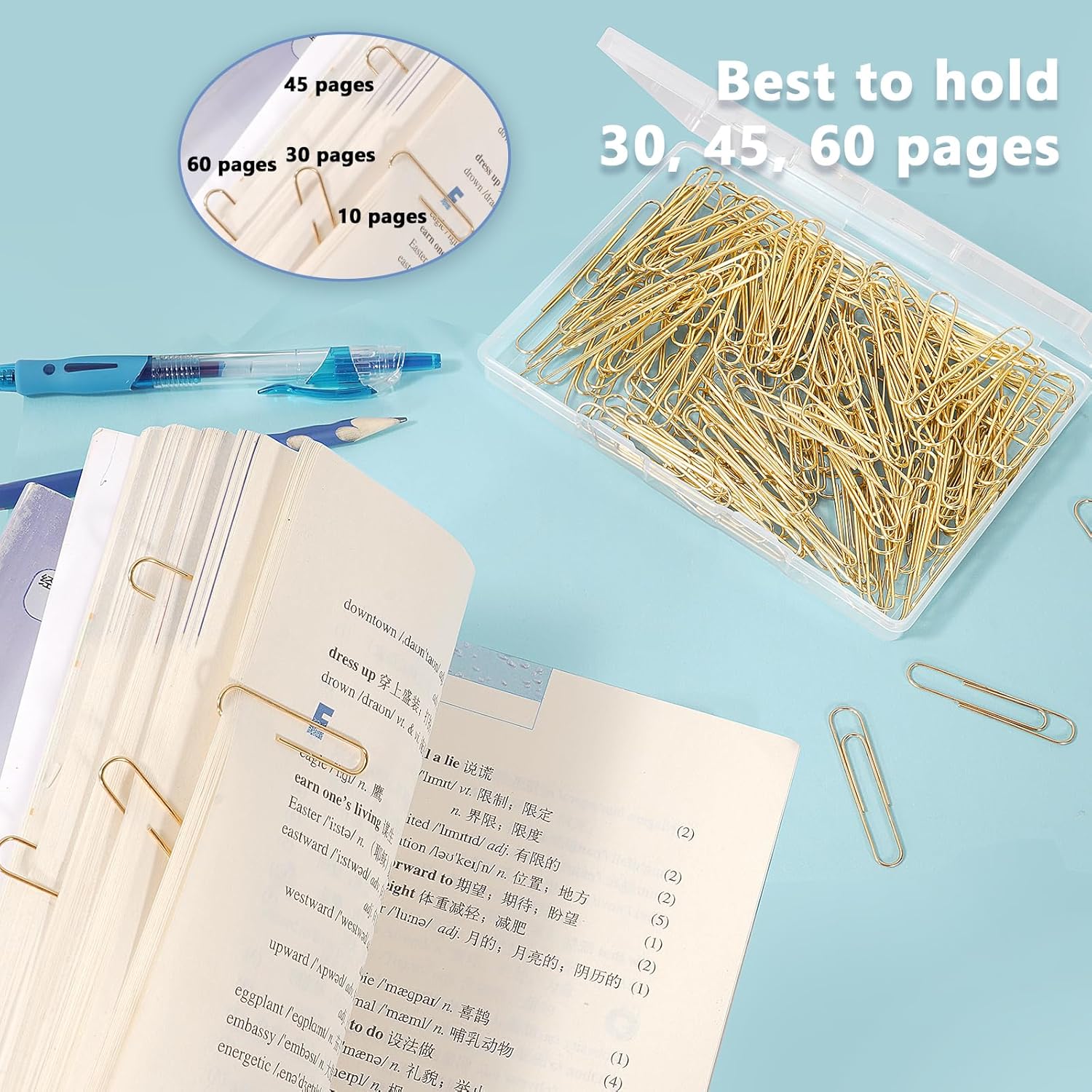 - 【2 INCH PAPER CLIPS】Includes 200 pcs 2x0.5 inch golden paper clips—ideal for securing thick stacks of paper, envelopes, or photos. Enough for daily office tasks, school projects, home organization, or long-term use without frequent restocking.