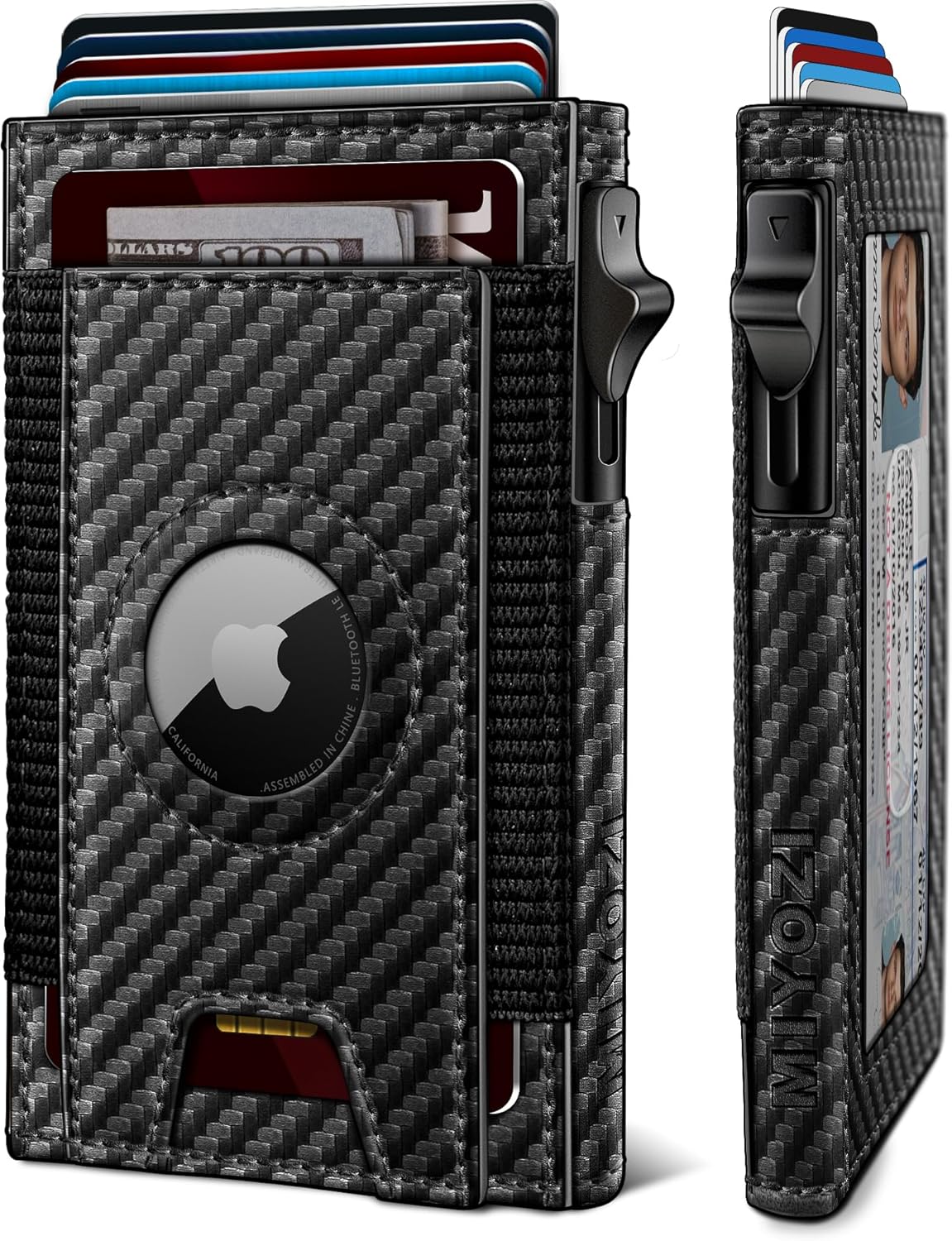 Airtag Wallet for Men, Slim Pop Up Credit Card Holder RFID Blocking Mens Minimalist wallet for 7-9 Cards ID Window, with Gift Box