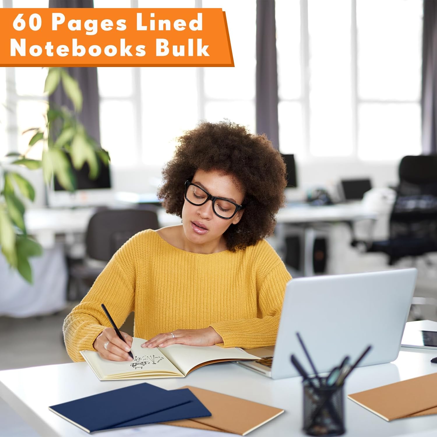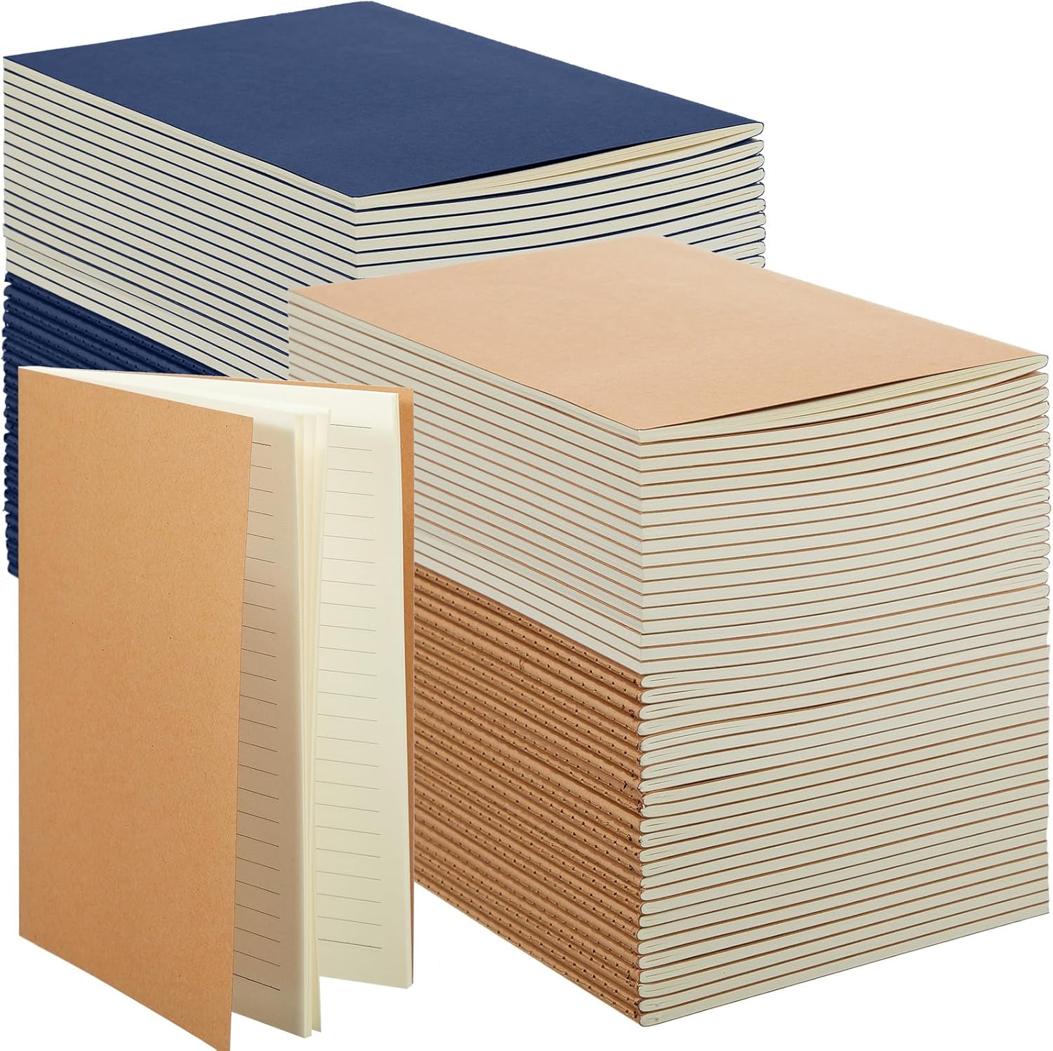 100 Pcs Kraft Notebook Journals 5.5 Inch x 8.3 Inch A5 Softcover Notebooks Bulk for Writing Sketch Office Notepad with 60 Pages 30 Sheets(Brown, Navy,Lined)