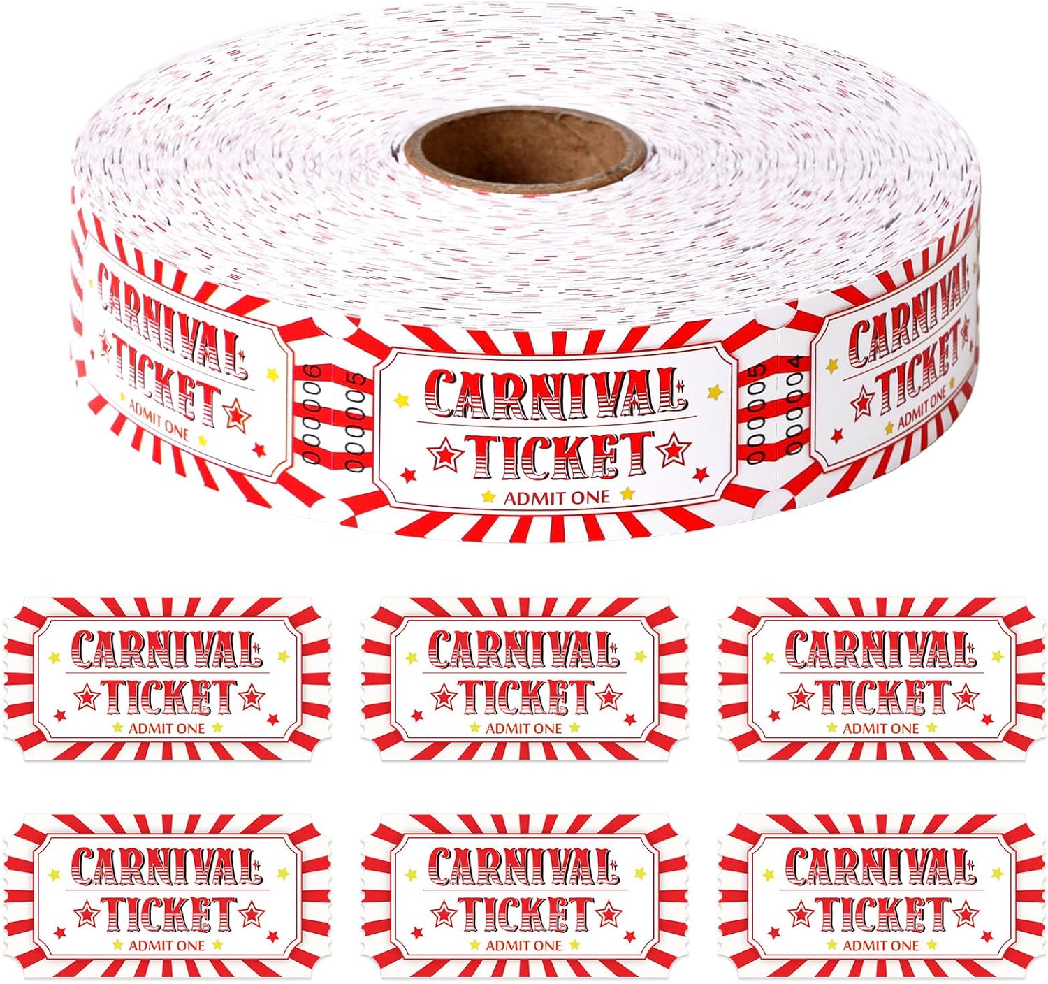 1000 Pcs Carnival Tickets Carnival Theme Party Decorations Circus Red White Color Raffle Tickets Roll Party Ticket for Events Carnival Favors Supplies