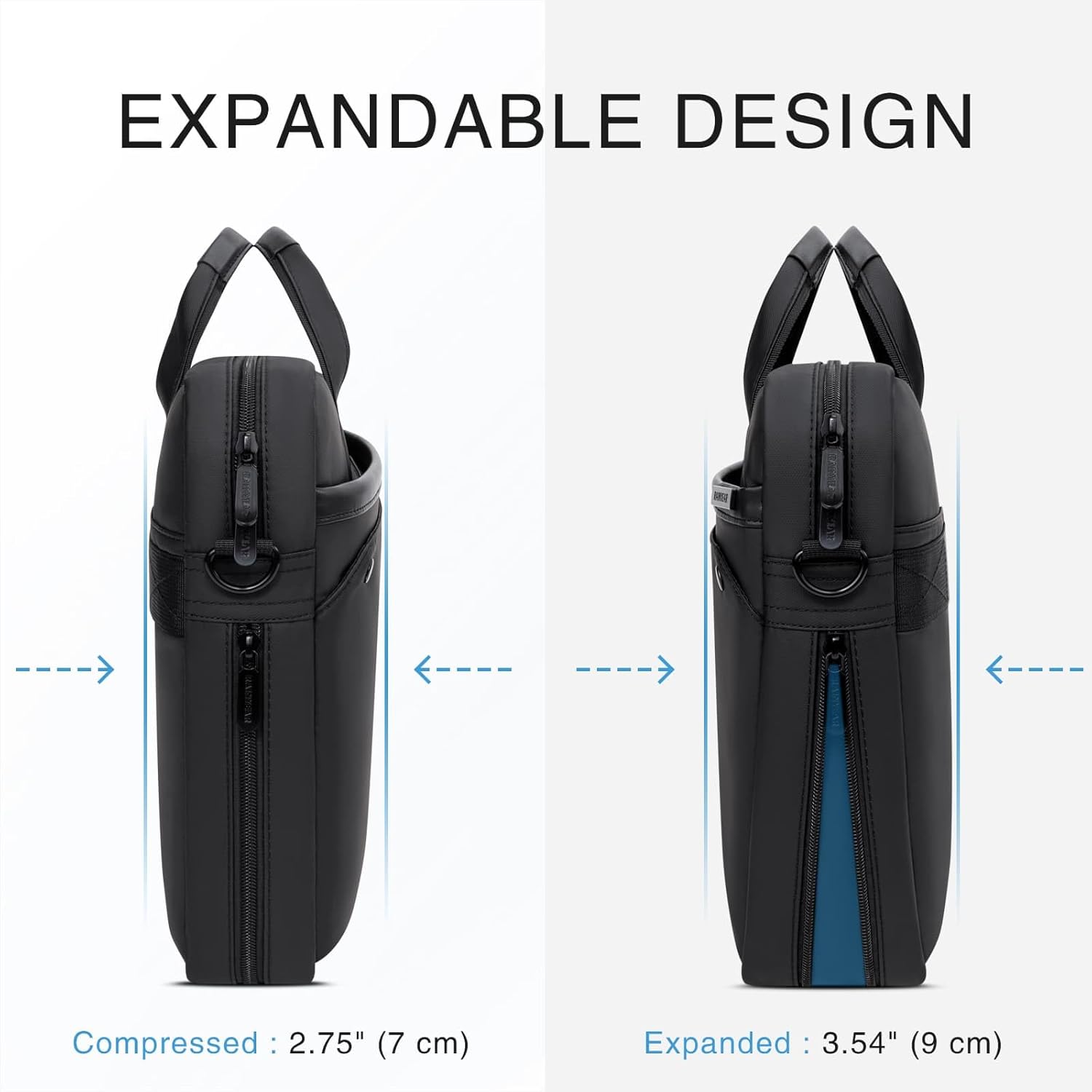 - Large Capacity: With two front pockets and a protective device compartment, this laptop messenger bag with expansion zipper design fits for up to 15.6 inch laptop computer, and it can provide enough space for documents, mouse, chargers, and other office supplies.