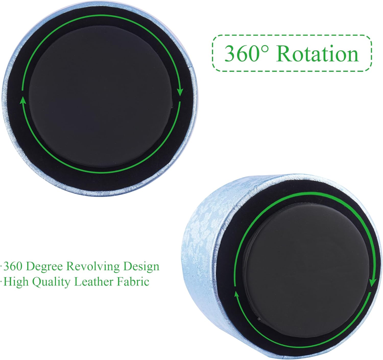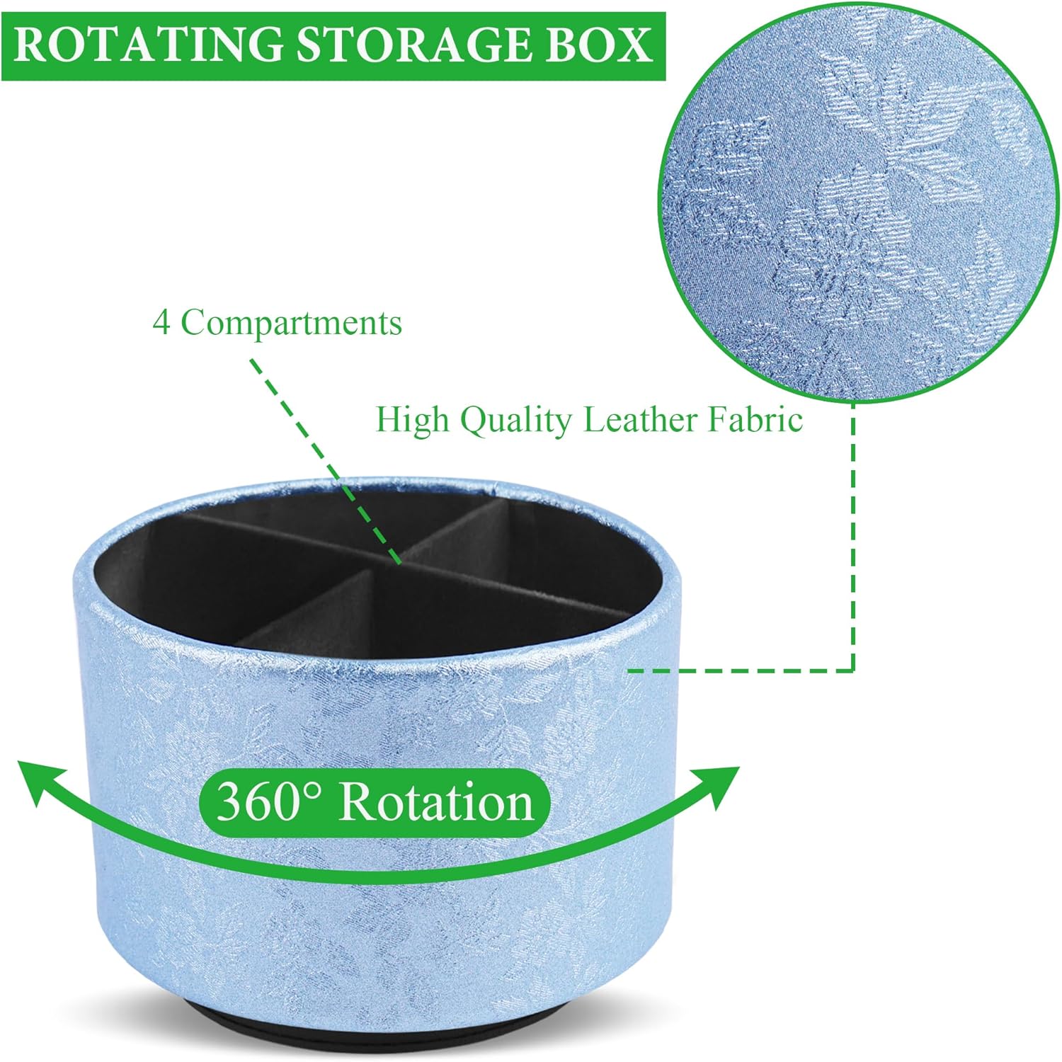 lizimandu Round Leather Art Supply Organizer,Remote Control Holder,360 Degree Spinning,Multi-Functional Pencil Holder,4 Compartments Desktop Stationary Organizer(1-Liuli Blue)