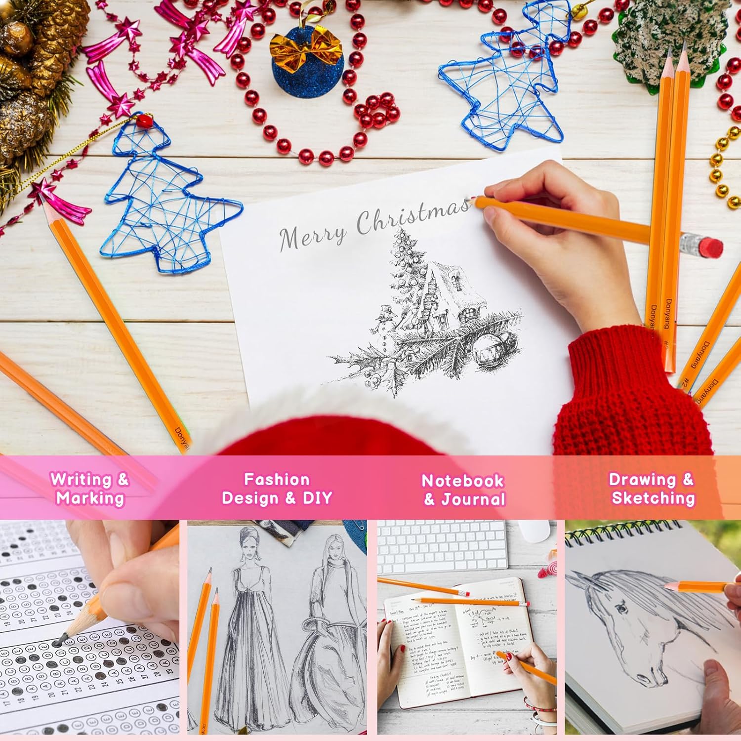- 【1200 PCS Value Pencils Bulk】Donyang’s bulk pack of Number Two pencils comes in a sturdy box with a rounded hexagon shape to reduce rolling. Ideal for schools, offices, and homes, these pencils provide smooth, consistent strokes. They make great gifts for teachers, parents, friends, workmates, and students, perfect for back-to-school supplies and classroom essentials. Furthermore, they are suitable for other occasions such as Halloween, Christmas, Thanksgiving, Easter, birthdays and graduations.