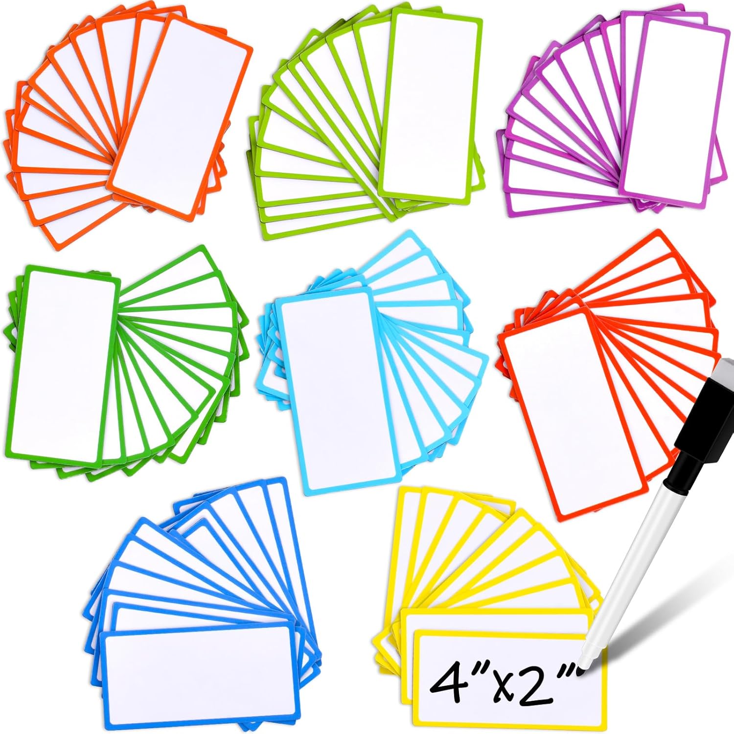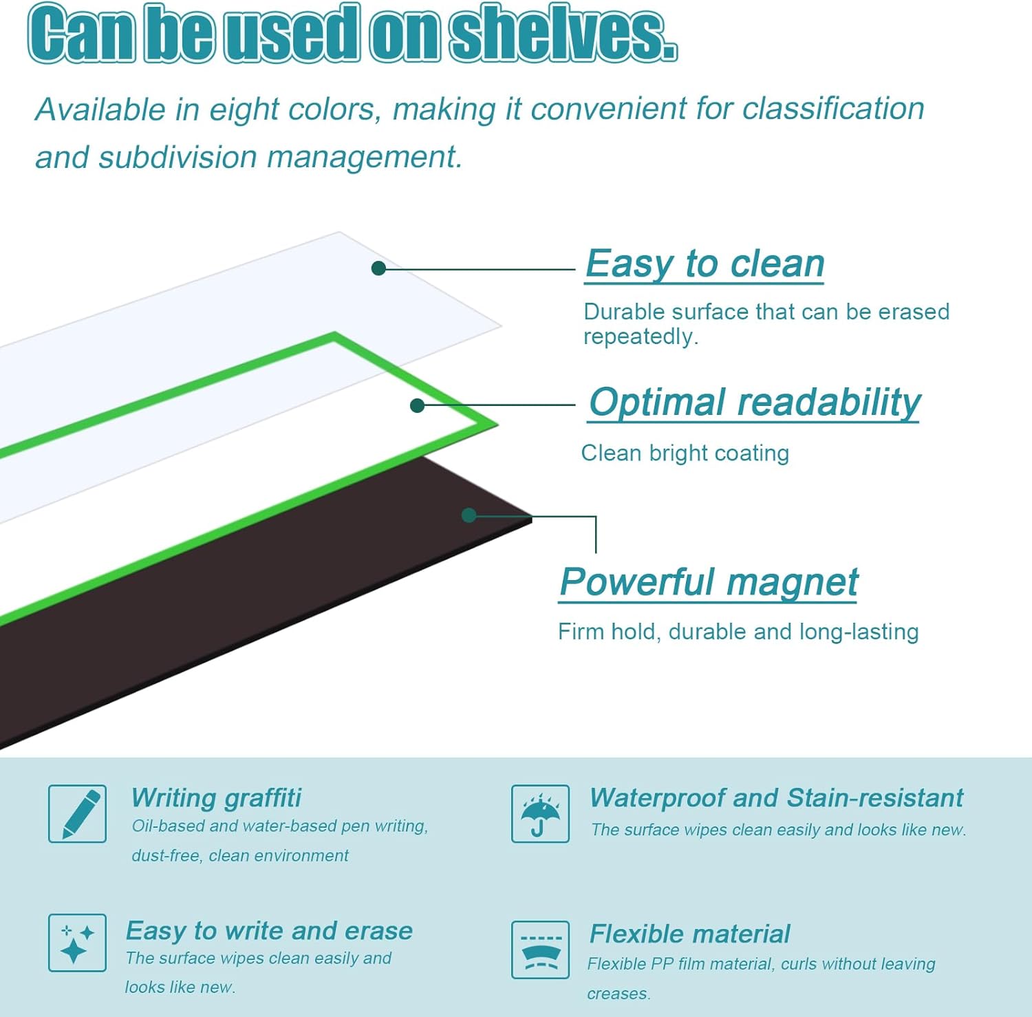 - 【Easy Clean and Reusable】These colorful magnetic labels are made with PET dry-erase film and can be written with the included whiteboard pen. The writing on the dry erase sticky notes is easily wiped clean and reusable. The magnetic name tags are easy to remove and leave no marks when not in use