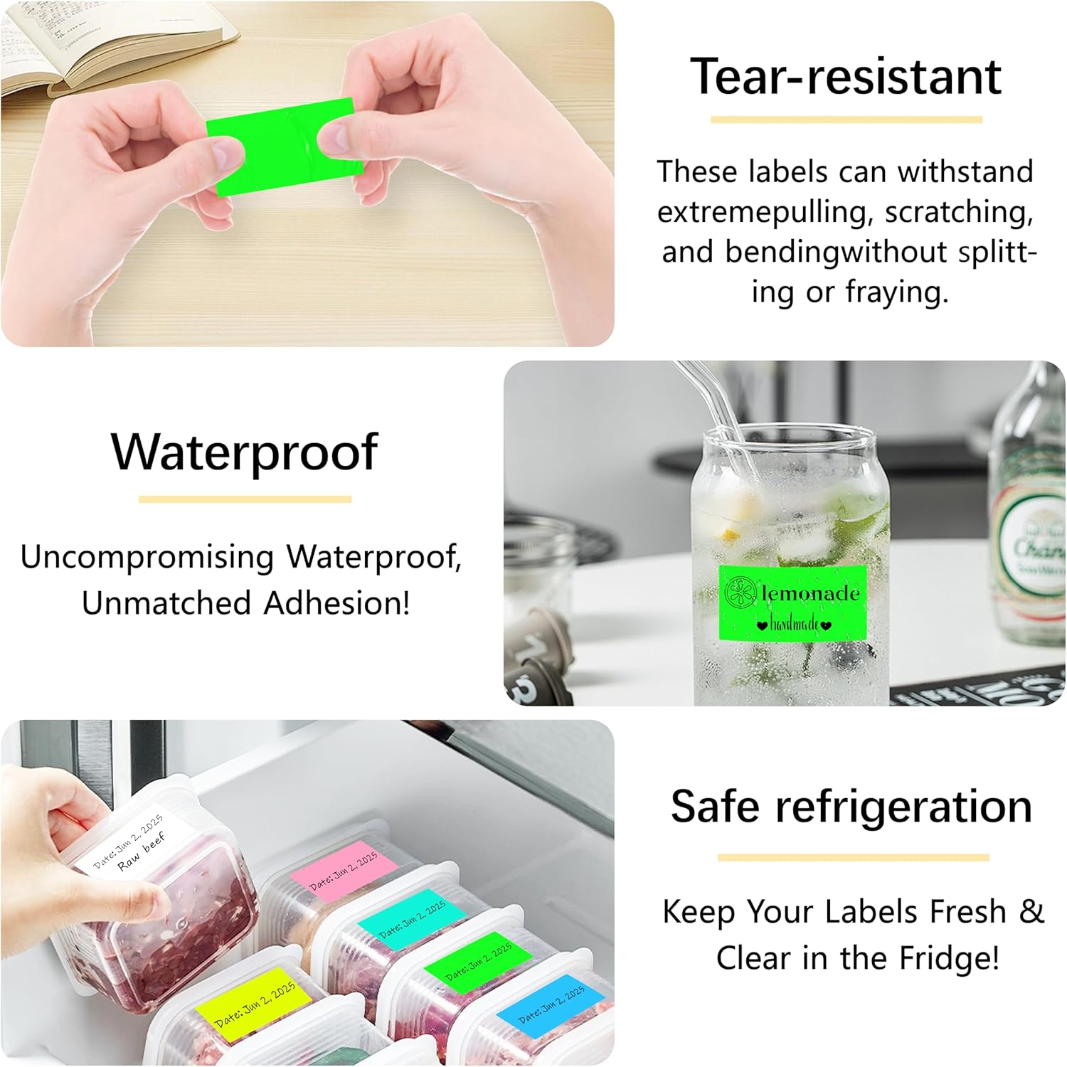 - Waterproof and Reliable: Made of waterproof and oil-proof paper, these sticker labels are not easy to be torn or blurry, so they're suitable for various situation, even in humid environment
