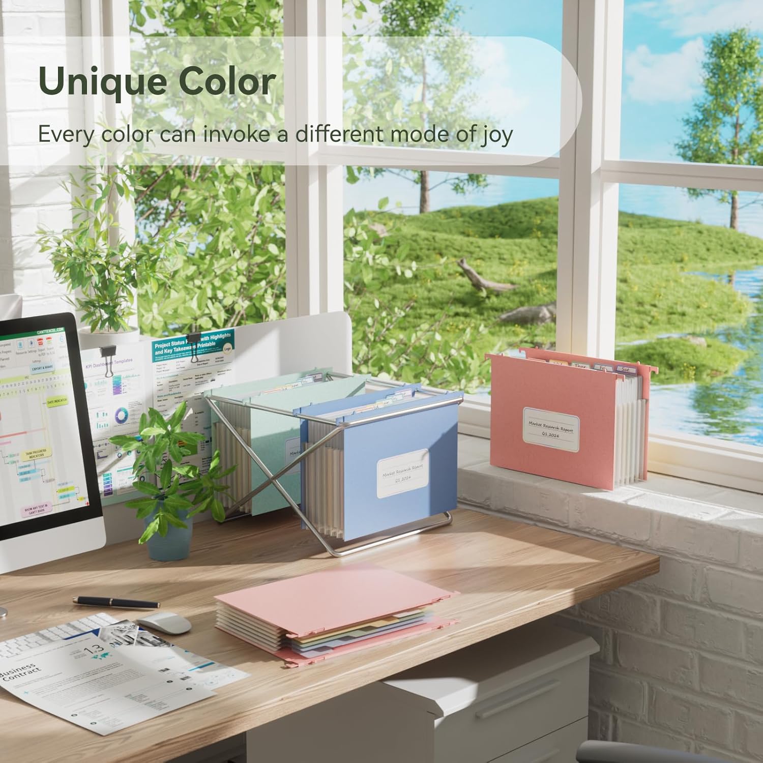 - 【Large Capacity Wheat Straw Hanging Folder】 EcoStash's Wheat Straw Hanging Folders come in three colors: Strawberry Pink,UN Blue, and Mint Green. Using different colors allows you to easily organize and differentiate your documents. Equipped with removable colored label stickers, this further aids in your classification and identification needs.