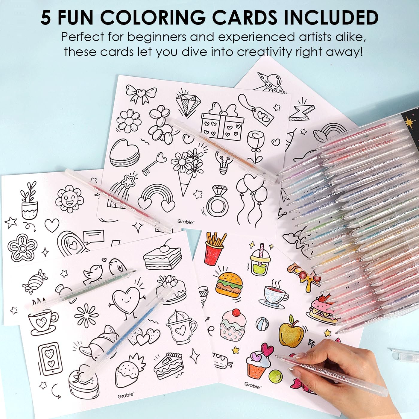 - CREATIVE EXPLORATION WITH COLORING SHEETS - To inspire your creativity, this gel pen set comes with 5 thoughtfully designed coloring sheets. Perfect for artists at any skill level, these sheets provide a relaxing canvas for you to explore and unwind, transforming your coloring experience into a joyful activity.