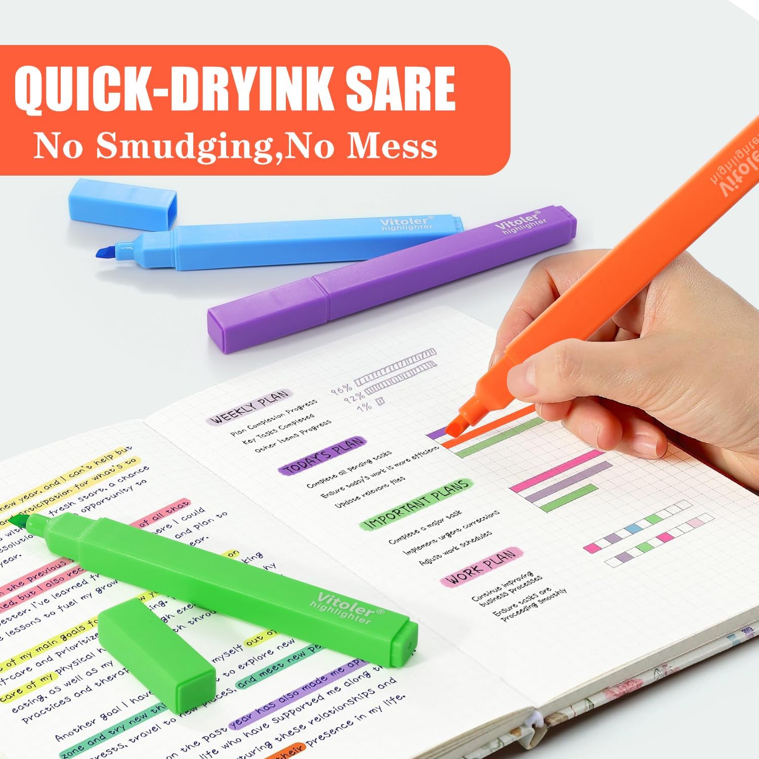 Vitoler Highlighters, 8Pcs Assorted Colors Highlighters,Soft Chisel Tip for Book,Bible Study Supplies Accessories,School Office Use, Teacher Supplies