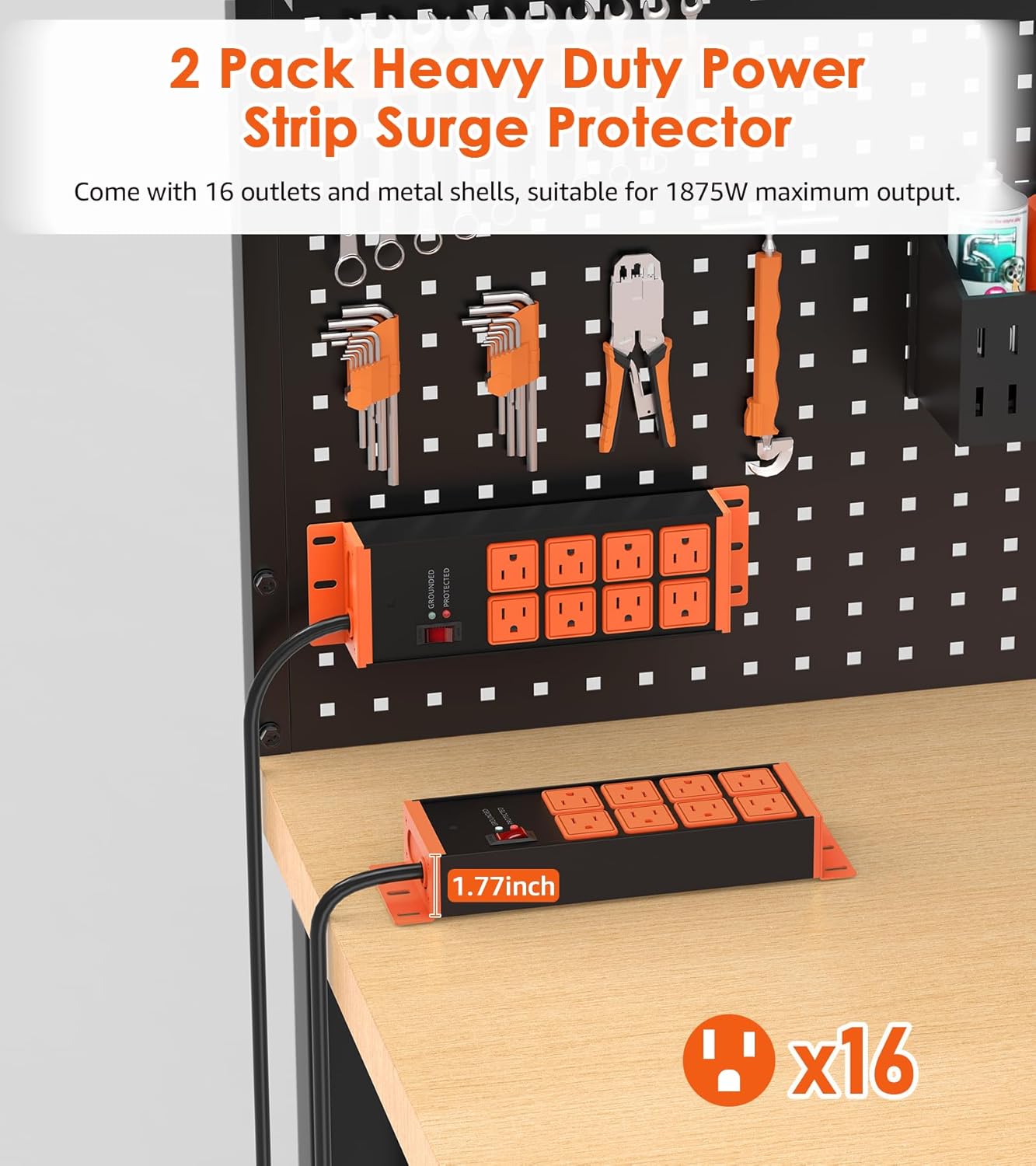 - Power strip 2 pack - Heavy-duty power strip combo pack features advanced surge protection and 16 total outlets (8 outlets per strip), Ideal for users requiring multiple outlets and higher power capacity, heavy duty surge protector safely powers numerous devices simultaneously