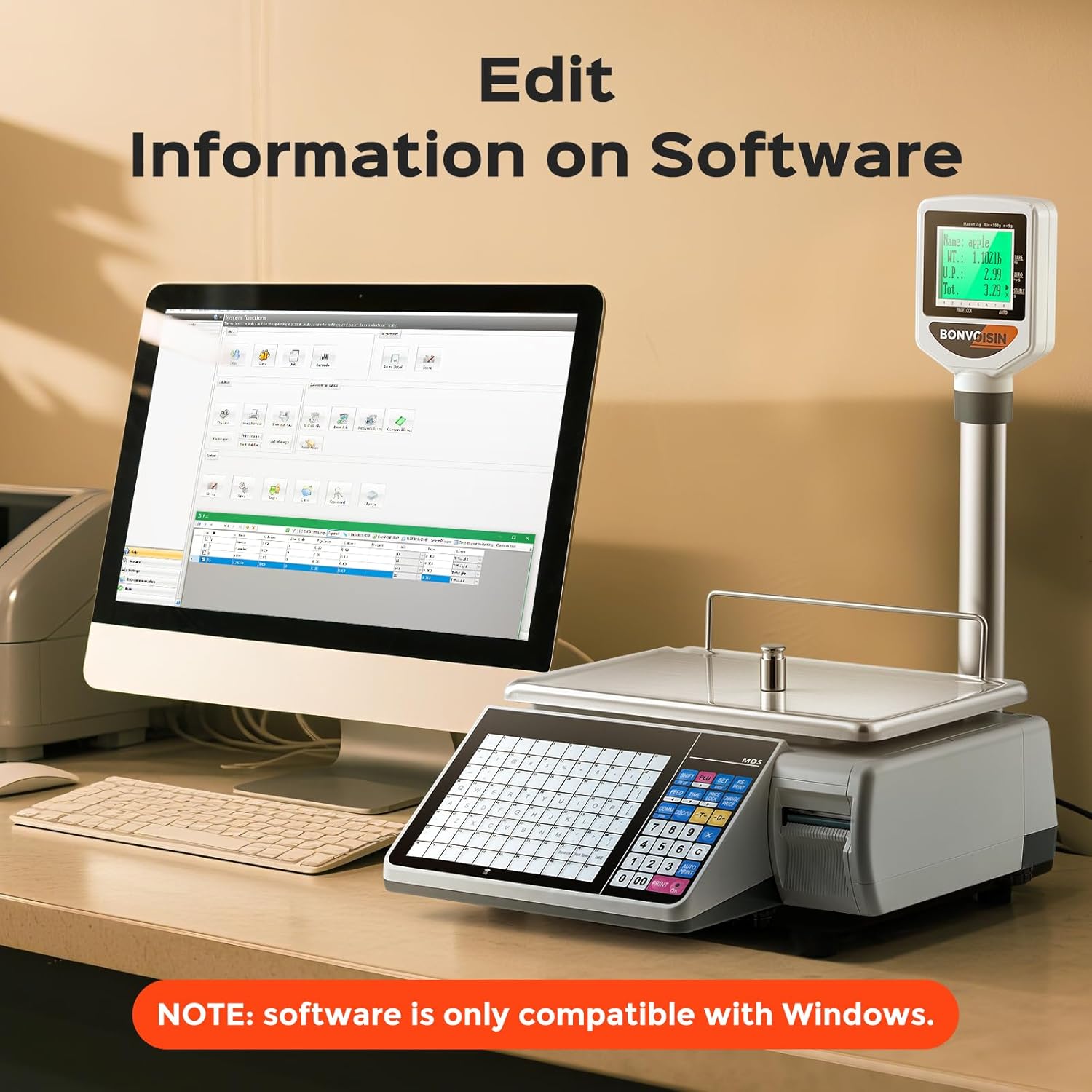 - Easy to Use - 1.Double-side display for both seller and customer. 2.Software and video tutorials are included. Software is only compatible with Windows.