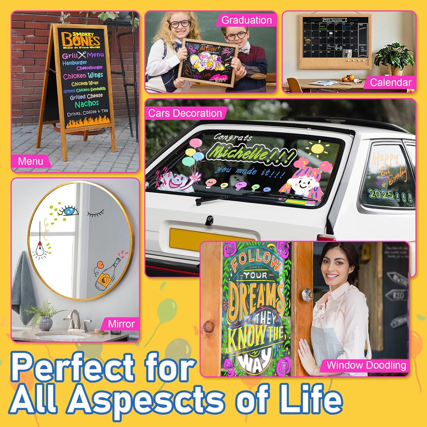 - EASY TO CLEAN - GOTIDEAL liquid chalk pens will keep your design in perfect condition,non-toxic,water-based liquid chalk markers can be erased easily by wiping the area with a damp cloth or paper towel.