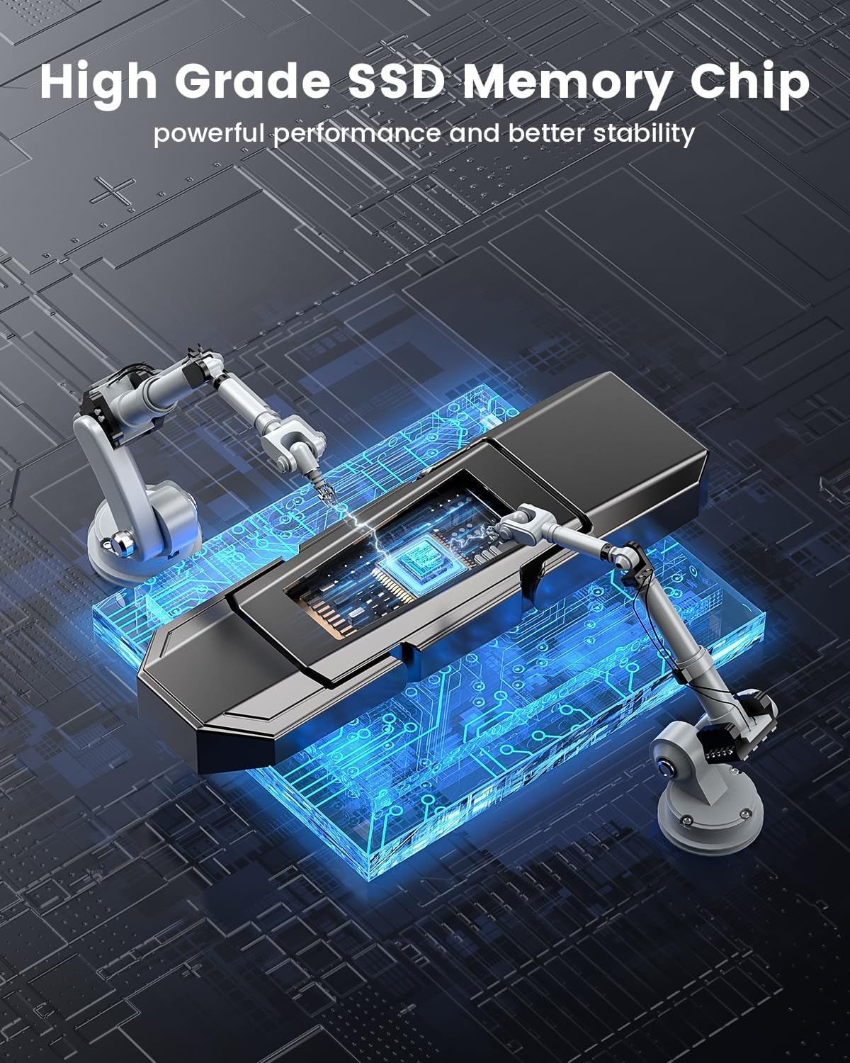 - Durable and Reliable: Adopting high-grade tlc memory particles combined with sturdy zinc alloy casing, the external ssd drive is drop-proof. The double-head cover design can better protect the interfaces from damage and well safeguard your important data.