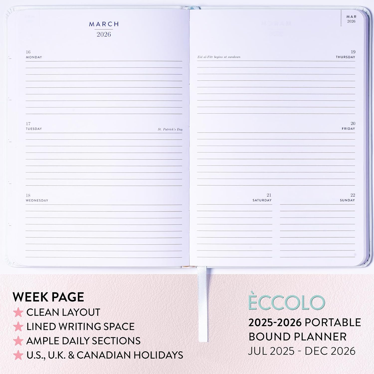 - STAY ORGANIZED: This easy to use agenda also features U.S., U.K. and Canadian holidays. Lined note pages at the end of the planner agenda book are a great place to record and note the little things.