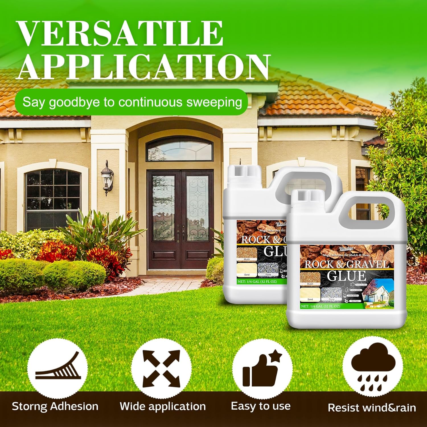 - Easily holds application - This ready-to-use adhesive simplifies landscape projects. For heavy materials (pea gravel or rock), our gravel binder can be used directly. For lightweight mulch (straw or leaves), mix 10:1 with water (do not exceed 1 part water), shake, and apply via sprayer or watering can. Apply 2-3 thin coats on dry surfaces for optimal hold. It’s perfect for gardens, driveways and walkways, securing rubber mulch and gravel with 12-24 month hold - ideal Landscaping Glue.