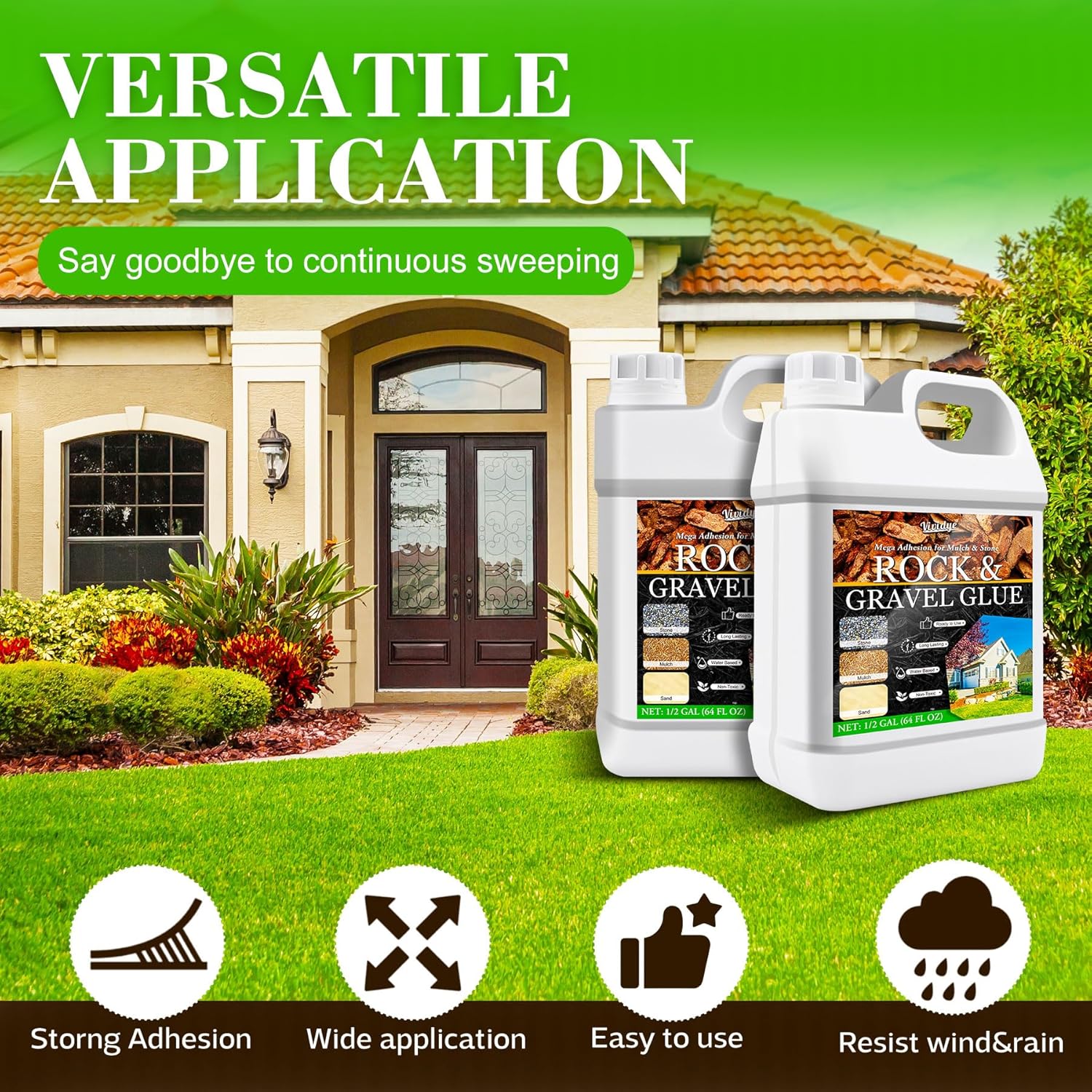 - Easily holds application - This ready-to-use mulch adhesive simplifies landscape projects. For heavy materials (pea gravel or rock), our gravel binder can be used directly. For lightweight mulch (straw or leaves), mix 10:1 with water (do not exceed 1 part water), shake, and apply via sprayer or watering can. Apply 2-3 thin coats on dry surfaces for optimal hold. It’s perfect for gardens, driveways and walkways, securing rubber mulch and gravel with 12-24 month hold - ideal Landscaping Glue.