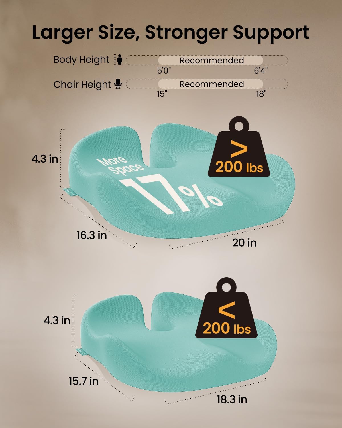 - Solution for Target People: Our upgraded extra-large seat cushion is tailored to meet the needs of individuals, providing a spacious and supportive seating solution designed to accommodate for weights exceeding 200 lbs with superior comfort and durability