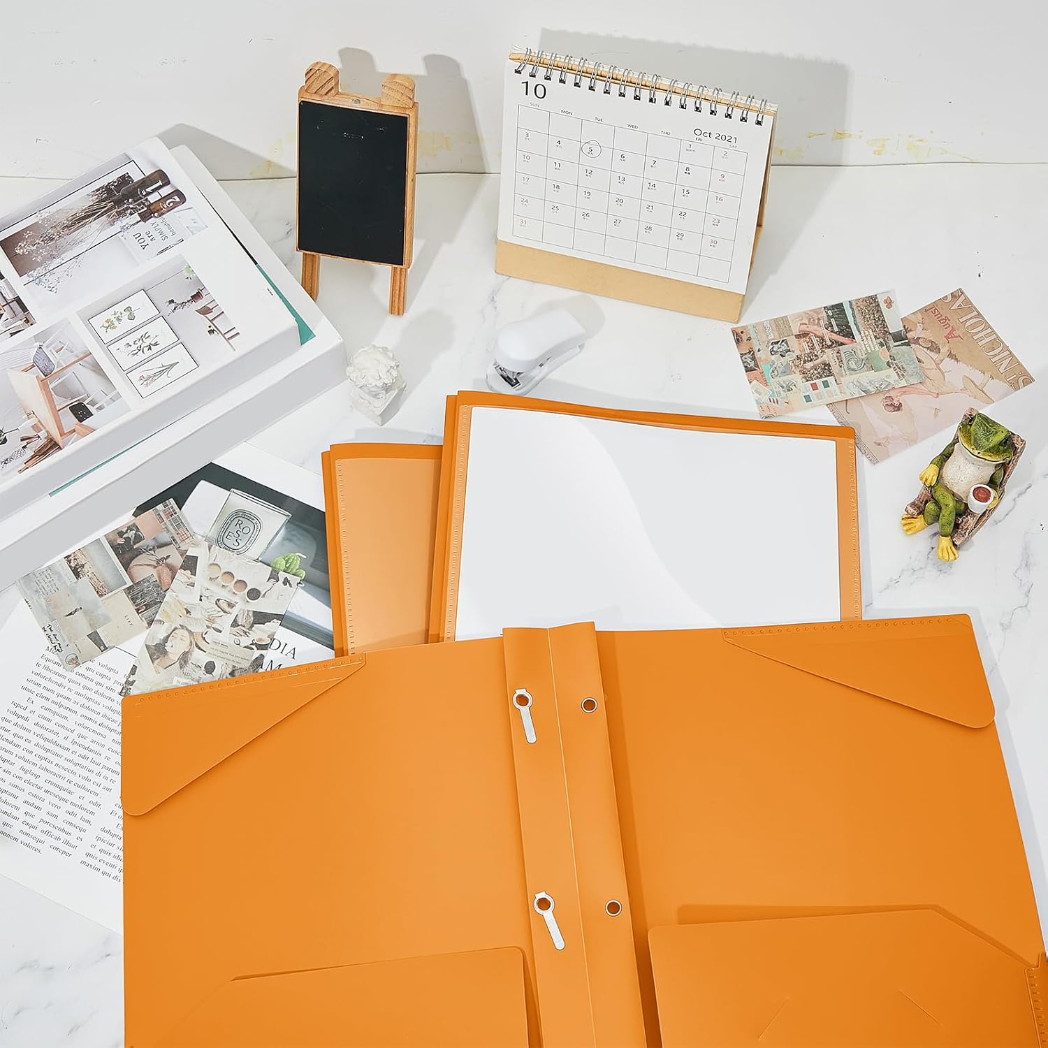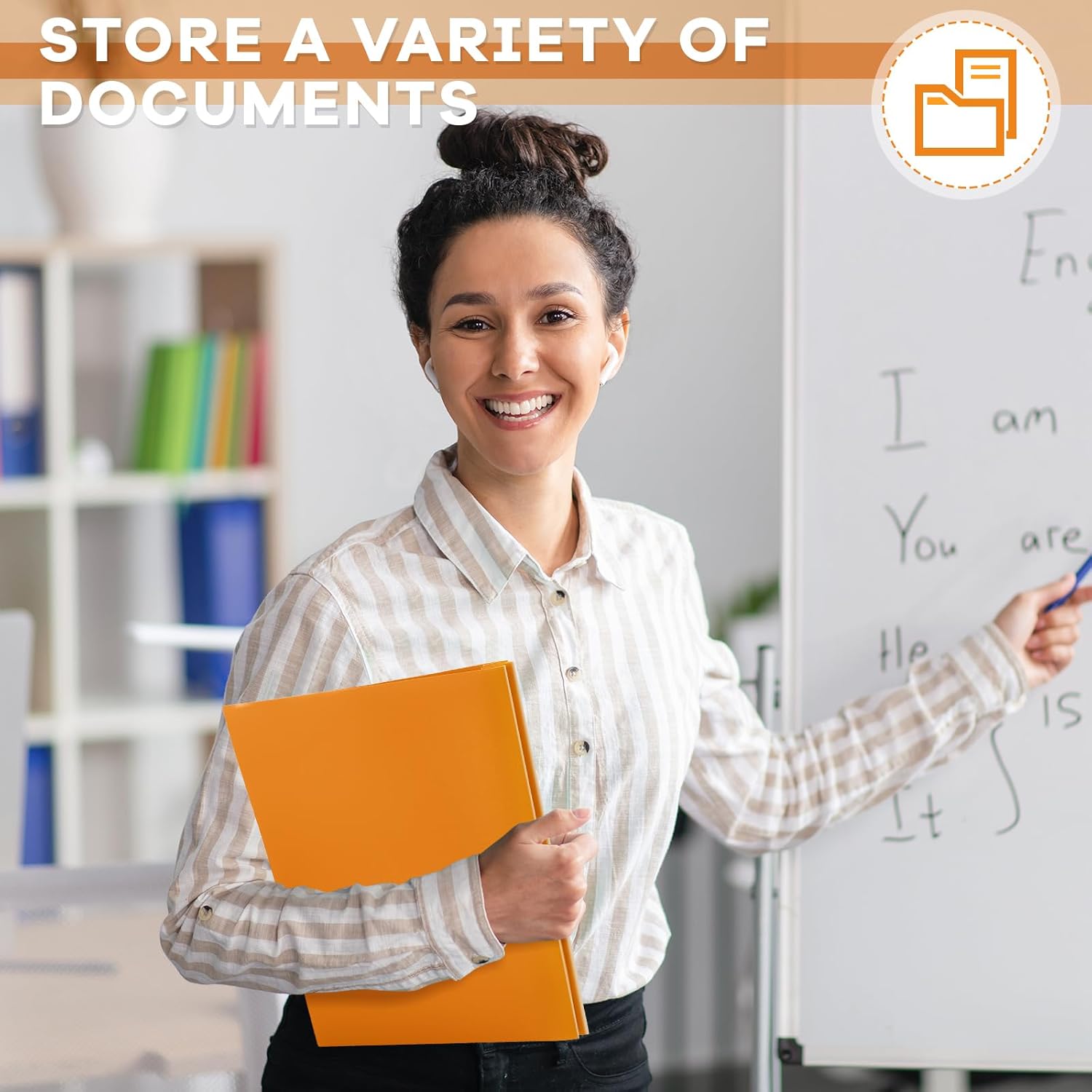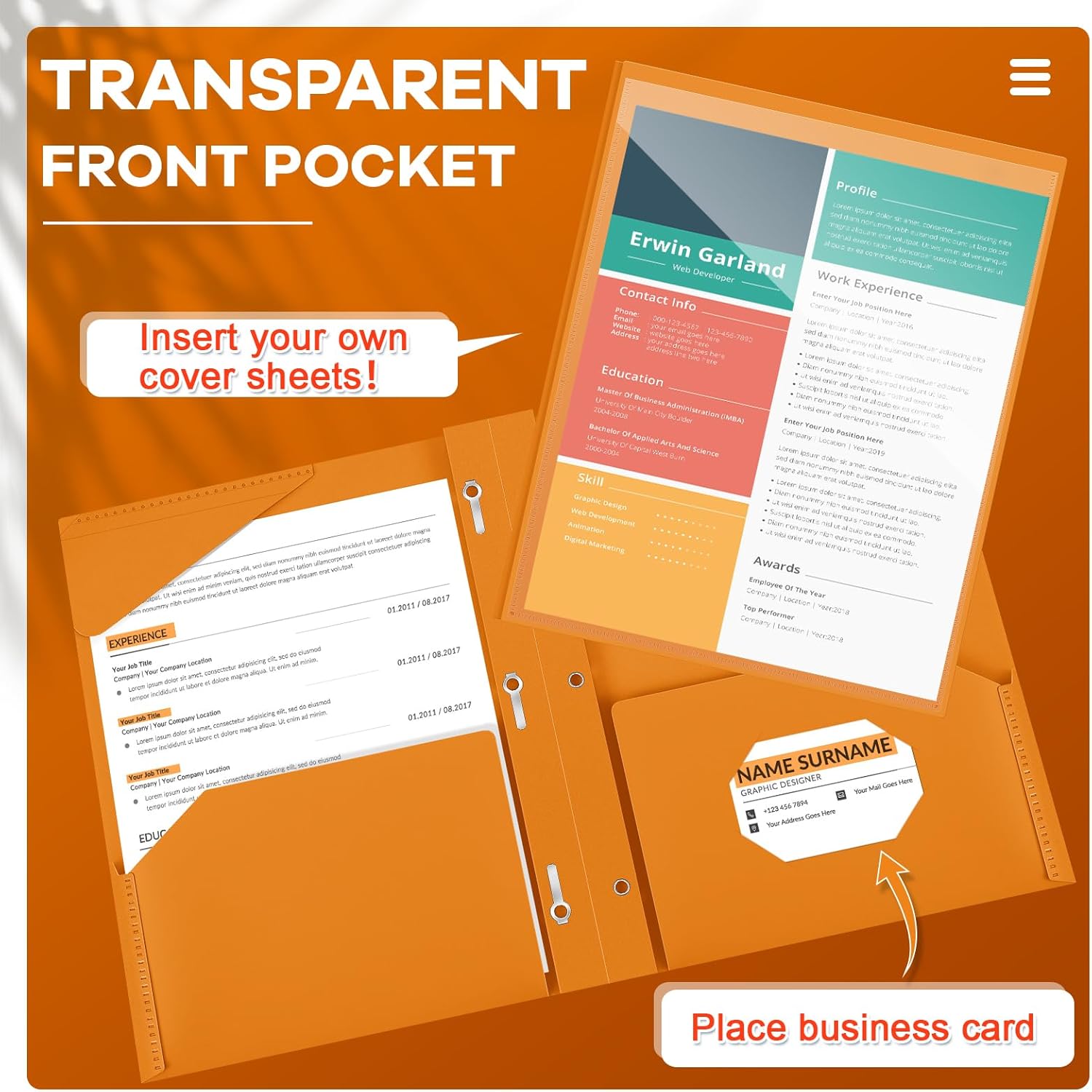 Henoyso 72 Pcs Plastic Folder with Clear Front Pocket and 3 Prong Plastic Folders with Card Slot Pocket Folders with Prongs for School Office (Orange)