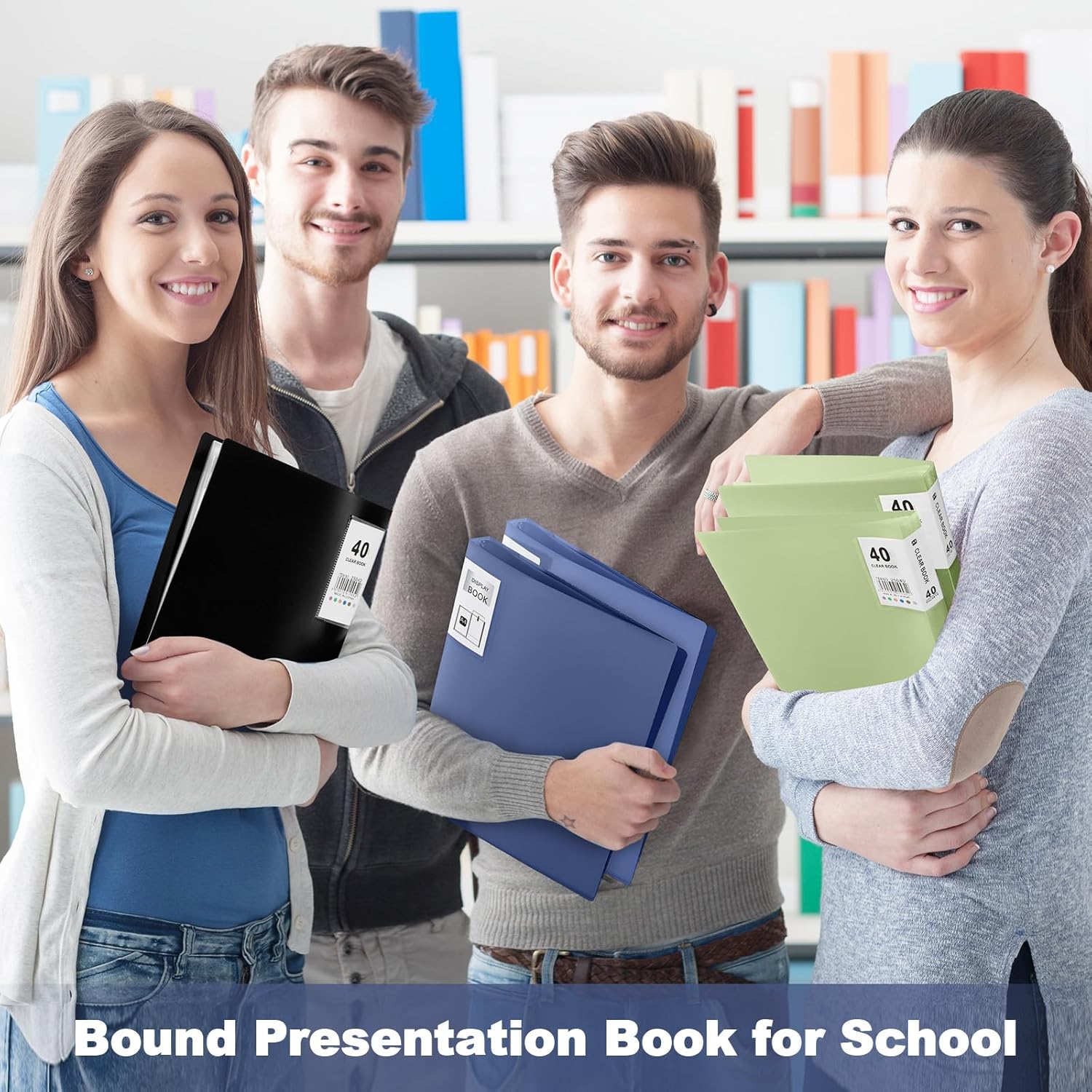 Marspark 6 Pcs Binder with Plastic Sleeves Large 8.5" x 11" Display Presentation Book 40 Pocket 80 Pages Art Portfolio Folder Clear Sheet Protector for Photo Document (Black,Green,Blue)