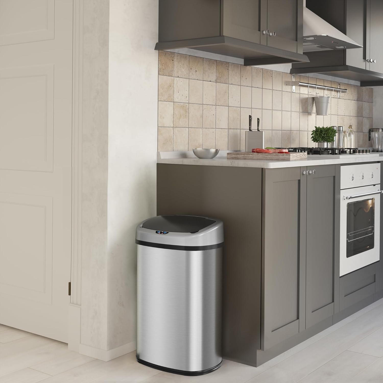 iTouchless 13 Gallon Stainless Steel Kitchen Trash Can with Sensor 2.0 Tech Touchless Lid and AbsorbX Odor Filter, Oval Slim Space-Saving Automatic Garbage Bin for Home, Office, Business, Restroom