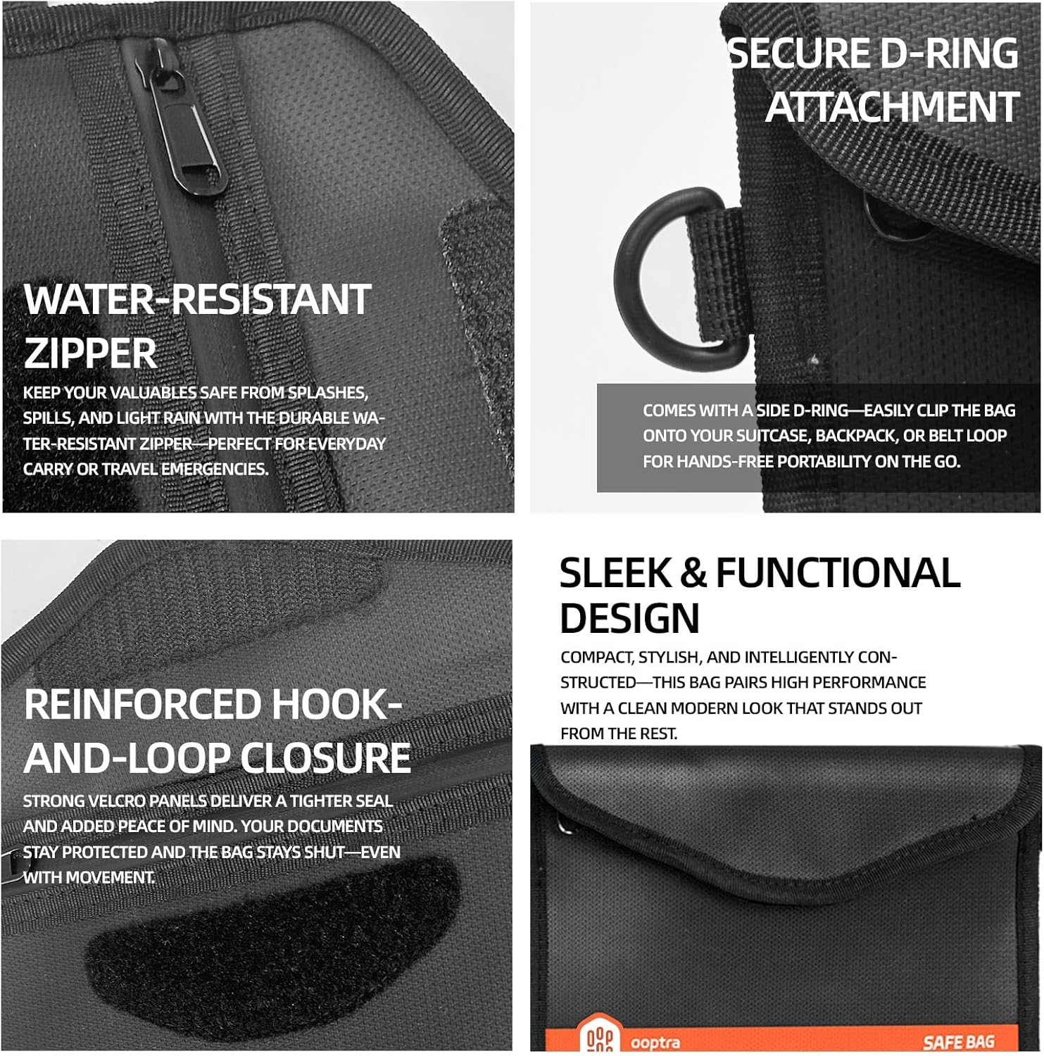 - 【Fireproof Travel Pouch – Compact, Portable & Hook-Ready】 This compact fireproof document pouch is built for convenience and peace of mind. Ideal for travel, business trips, or everyday use, it protects your essentials—like cash, passports, and small documents—from fire and water damage. Designed with an external buckle hook, it easily attaches to backpacks, luggage, or handbags, making it a smart, portable anti-theft storage solution on the go.